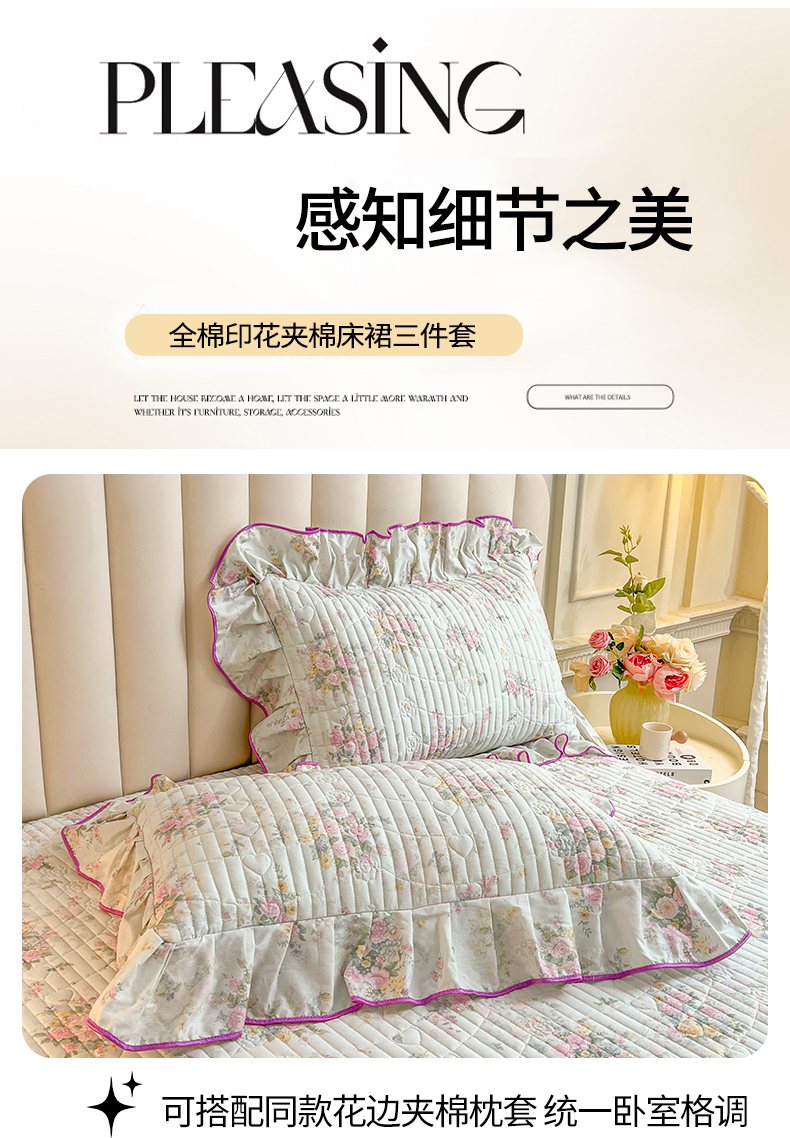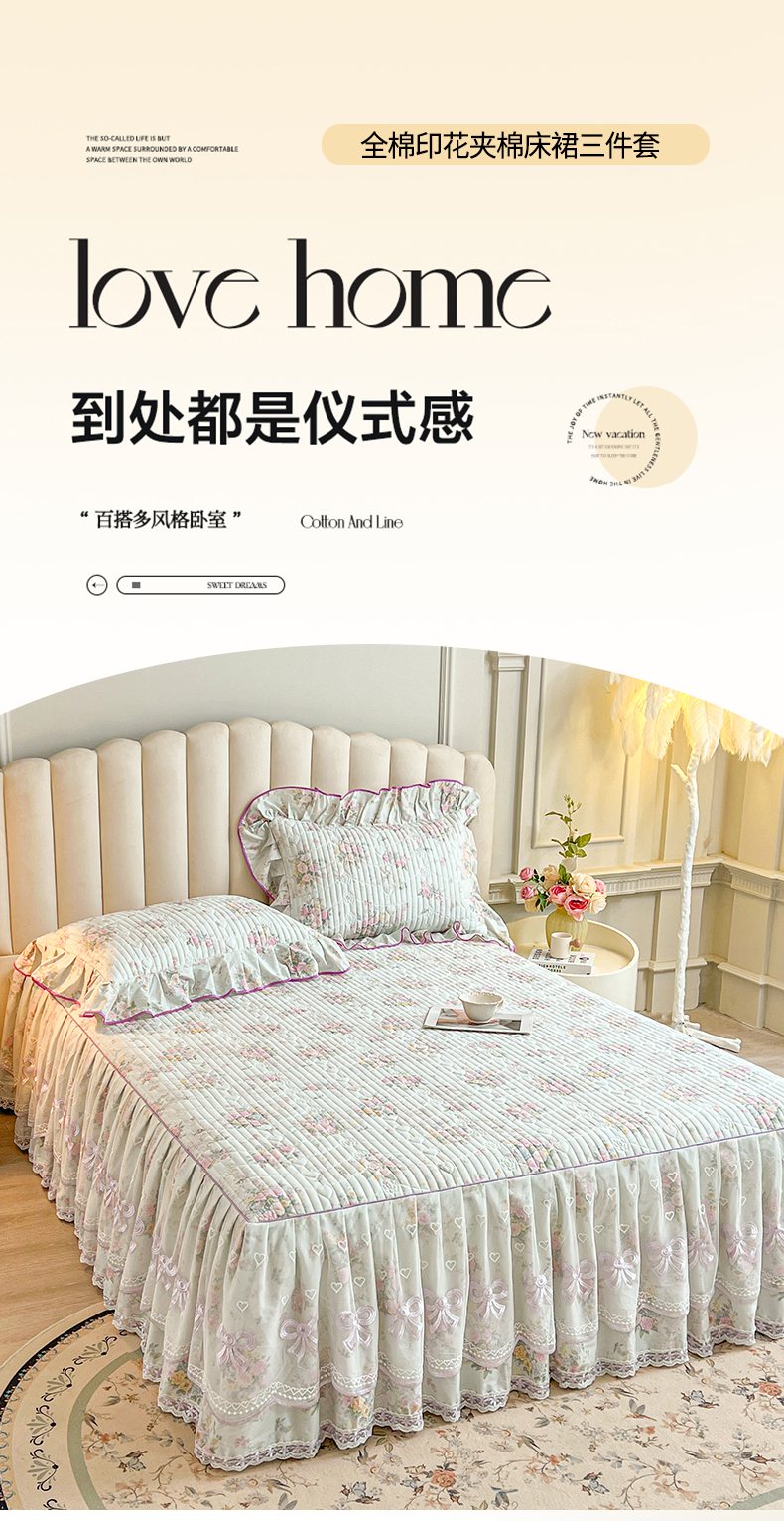 当前位置: 91家纺网 > 商品网购 > 床品套件 > 三件套 > 宜凡家纺 2026新款全棉印花公主风夹棉床裙三件套 朝花心悦