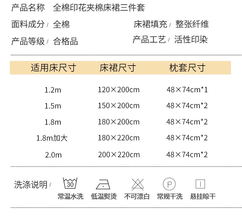 150*200cm夹棉床裙单件 | ¥110.00 |