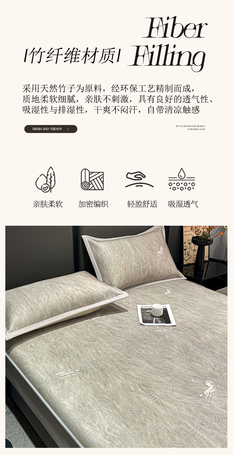 • 91家纺网 家纺一手货源 找家纺 富馨莱 2026新款高端竹纤维床笠款软凉席三件套夏季凉席席子 驰野听风-灰绿