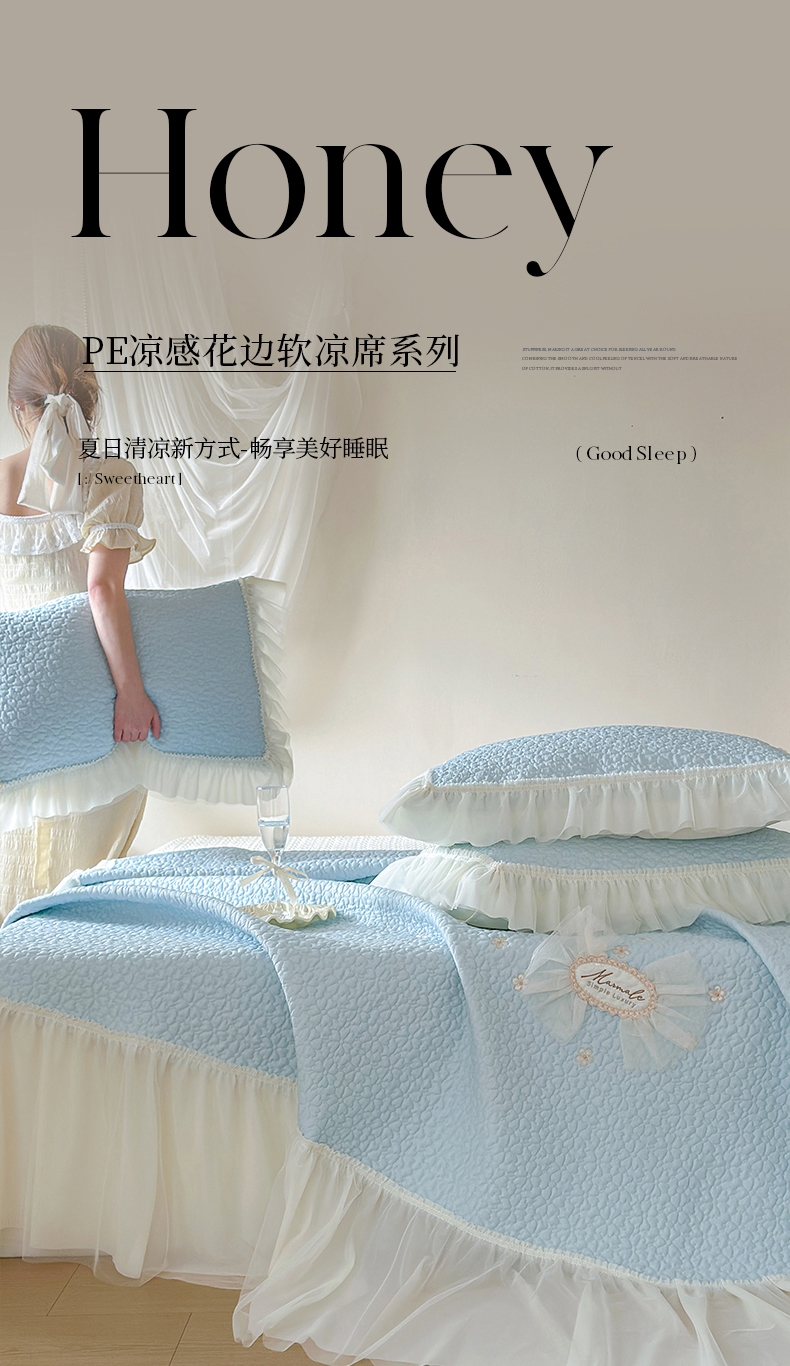商品名称:乐朵家居 2026新款 蜜糖(复合)凉豆豆凉席三件套 浅蓝色