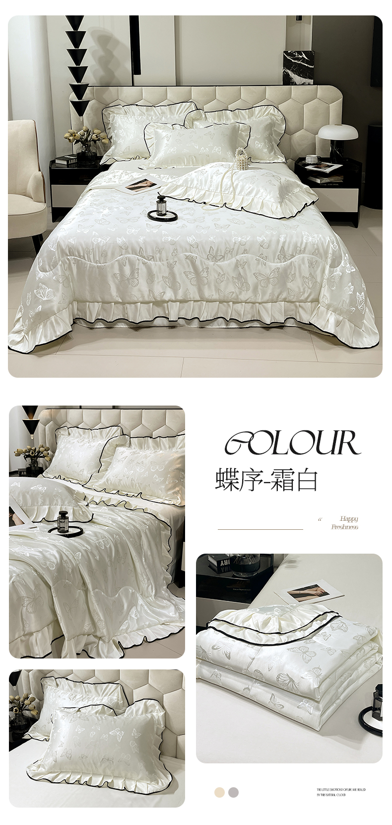 (总)慕希 2025新款水洗棉花边夏被款夏凉被空调被床盖夏被四件套,赫本-爱心白,赫本-蝴蝶结粉,赫本-可可玉,赫本-奶味蓝,赫本-奶油白,赫本-柔光蓝