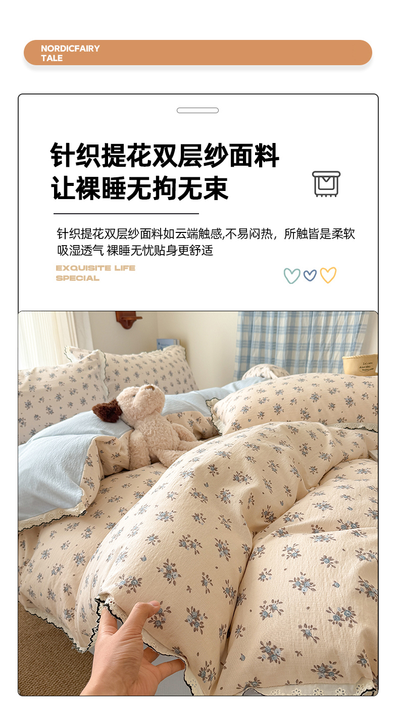 (总)温眠家纺 2026新款云感针织提花双层纱四件套,小木马,百变叮当,彩虹小马,草木诗,春漾,动物园,恐龙世界,快乐小兔,快乐小新,快乐星星,兰亭,梨花落,猫咪乐园,奶油风,柠夏,派对狗,青苹果,晴天小猫,甜心萝莉,未来暮,小海绵,星雪人,樱桃酱,紫薰