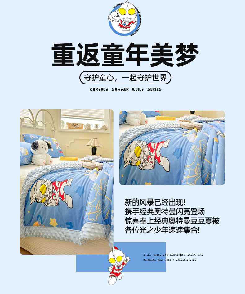 (总)名兮 2026新款A类经典奥特曼豆豆被夏凉被夏被空调被,豆豆被-奥特兄弟,豆豆被-奥特勇士,豆豆被-光线王子,豆豆被-星星奥特曼