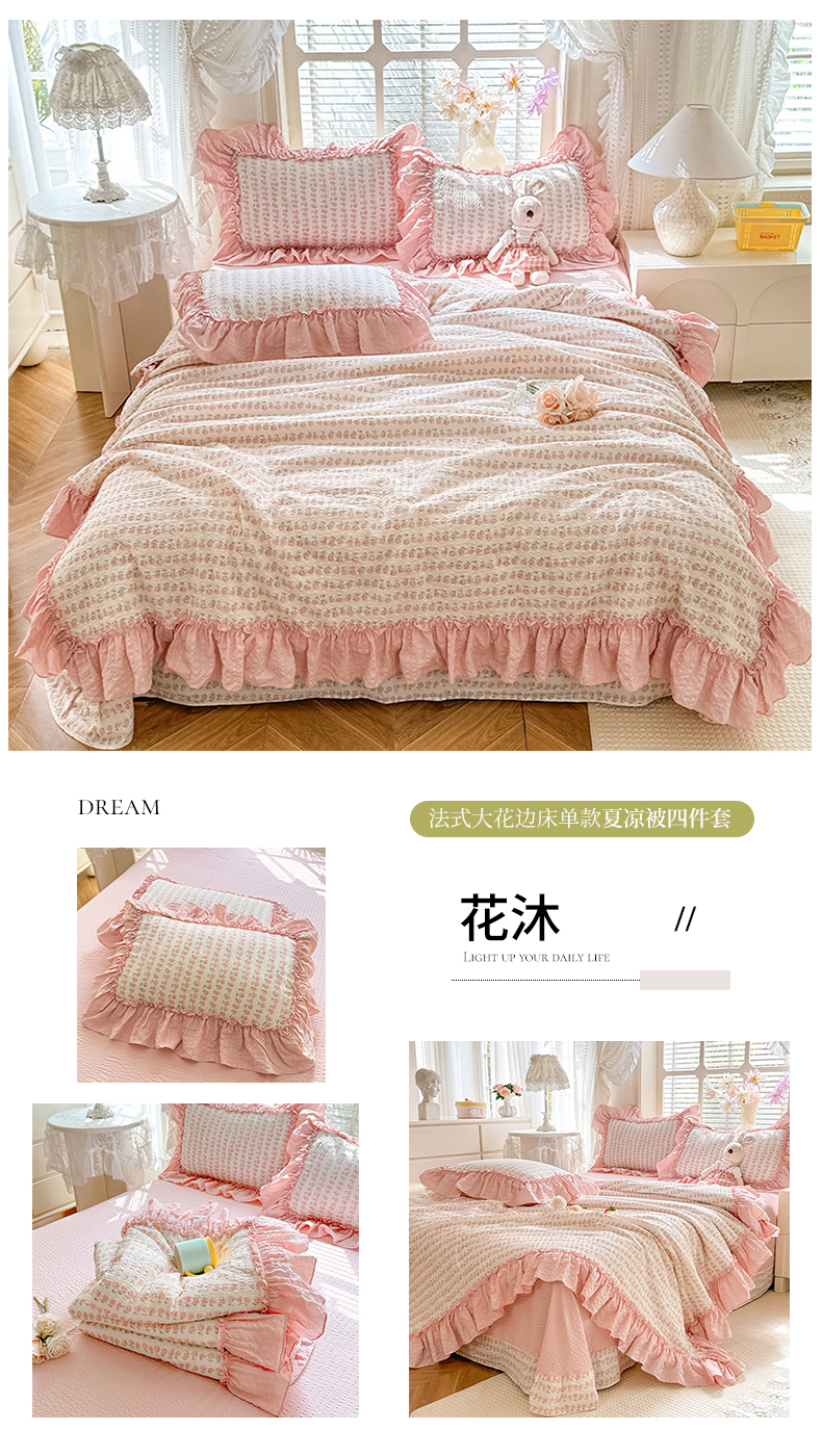 (总)韩约家纺 2026新款法式大花边床盖款泡芙棉夏凉被空调被四件套,倚梦,宝贝甜心,春旭,蝶语,繁花,花沐,绿意,木槿,妮可,仟香,星语,熊宝
