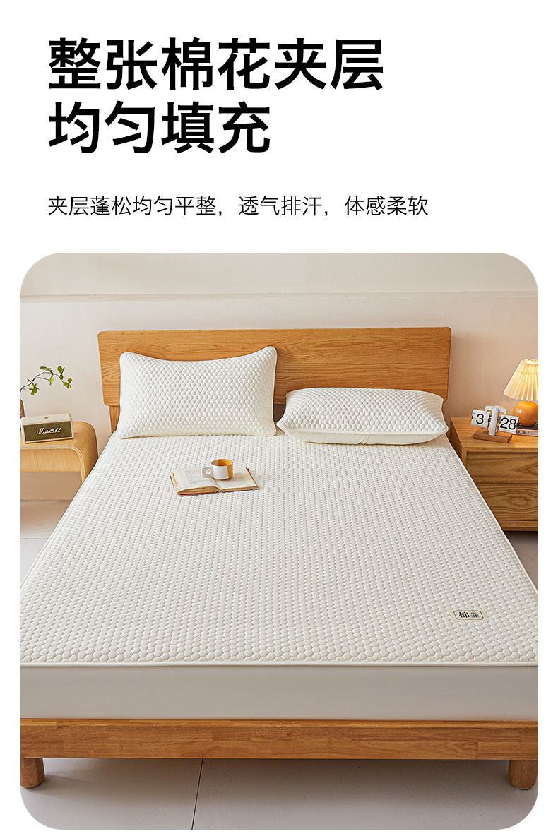 • 91家纺网 家纺一手货源 找家纺 居眠 2026新款蜂巢-防水夹棉棉花床笠 蜂巢-白