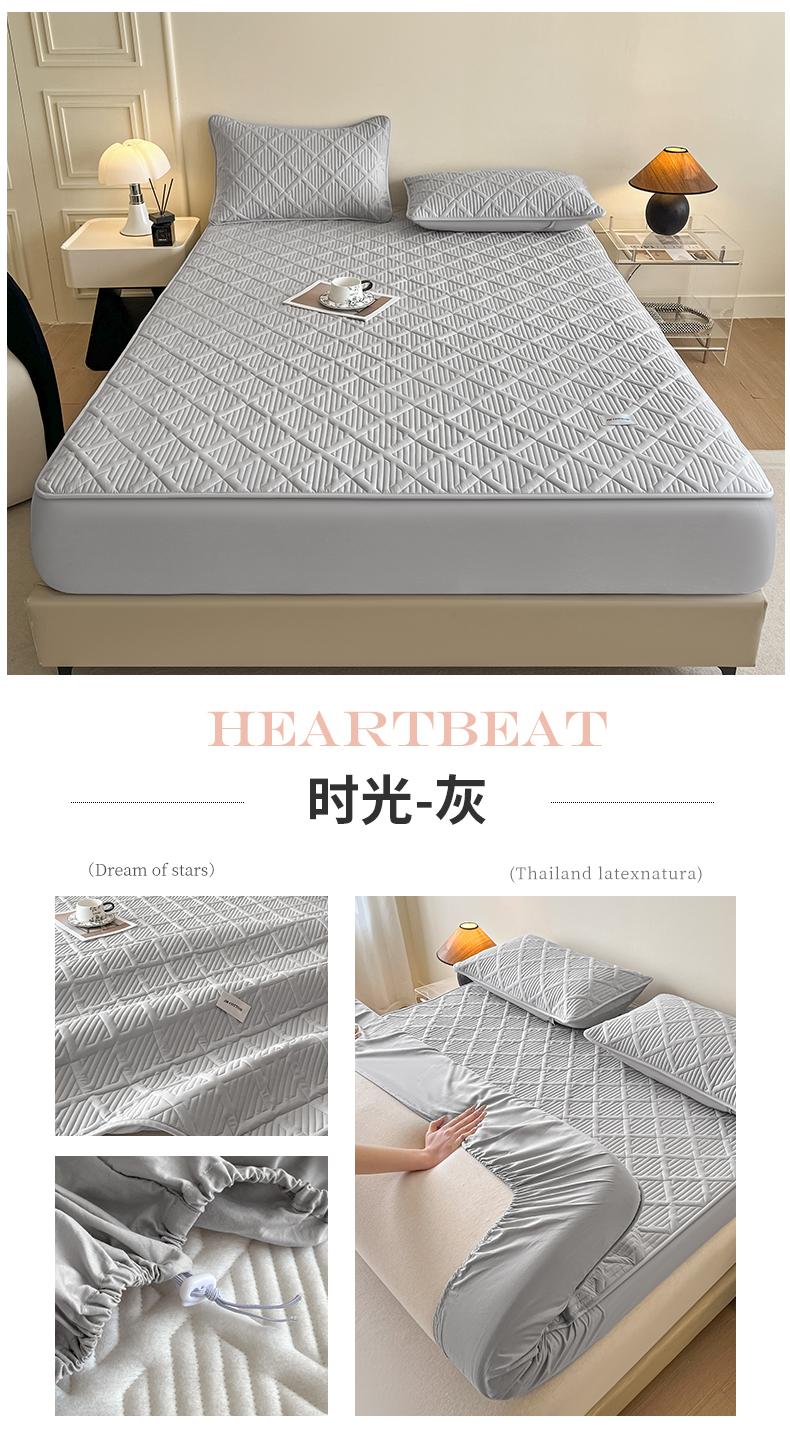 (总)居眠 2026新款防水防滑夹棉床护垫-星格,星格-白,星格-粉,星格-灰,星格-卡,叠拍
