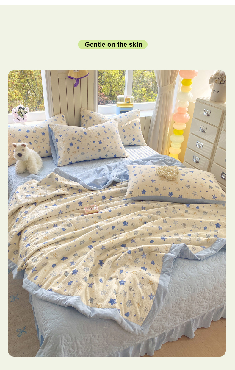 (总)莱米家纺 2026新款云感泡泡双层纱夏被夏凉被空调被床盖四件套,波西米亚-咖,波西米亚-紫,海派甜心,猫咪乐园,猫咪日记,魔法星星,苹果星星人,兔兔乐园,音乐小狗
