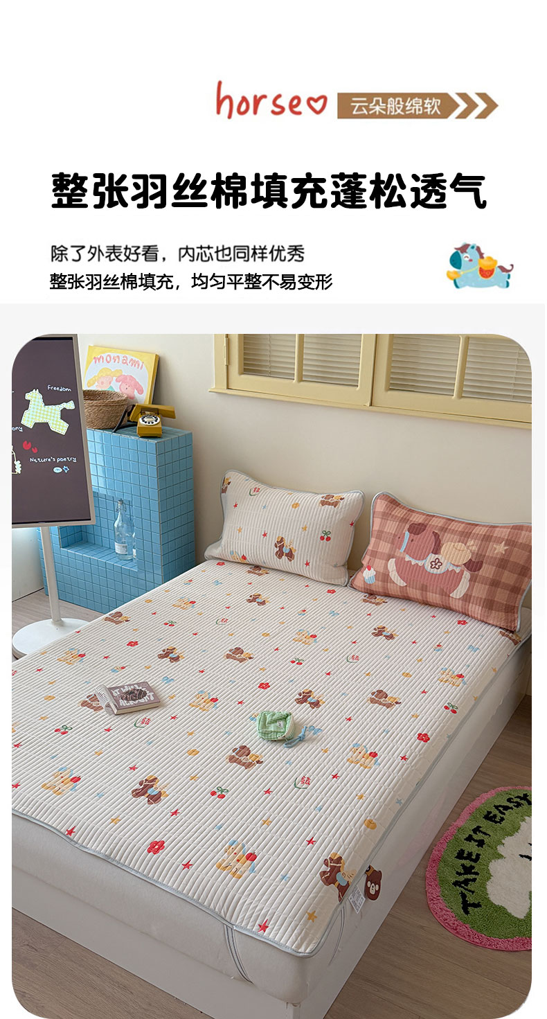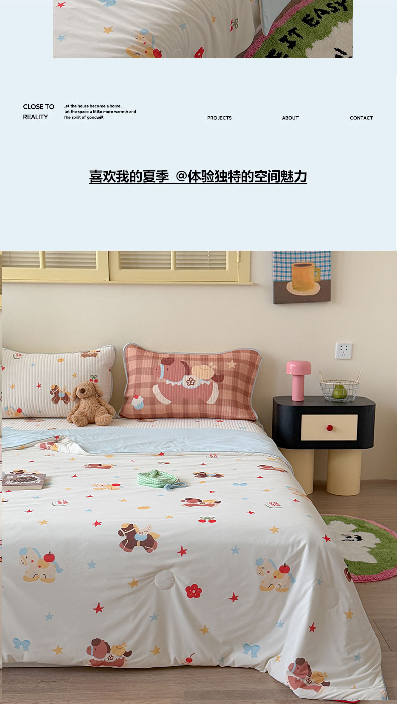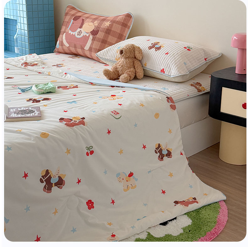 • 91家纺网 家纺一手货源 找家纺 桃子家居 2026新款A类小清新卡通数码印花混搭小冰皮夏被夏凉被空调被席子凉席四件套 小冰皮-甜梦小马