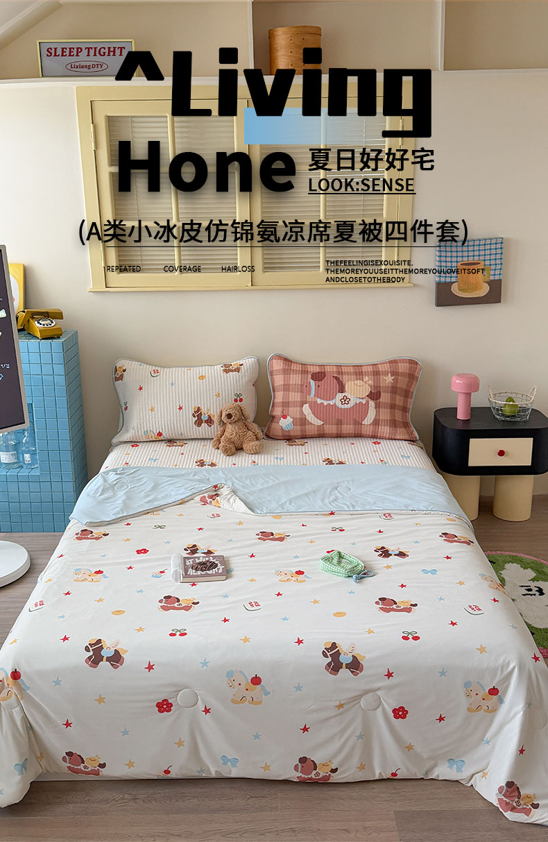 (总)桃子家居 2026新款A类小清新卡通数码印花混搭小冰皮夏被夏凉被空调被席子凉席四件套,小冰皮-薄荷奶糖猫,小冰皮-冰蓝草莓,小冰皮-粉粉番茄酱,小冰皮-焦糖小兔,小冰皮-蓝格奶油猫,小冰皮-奶咖小狗,小冰皮-软萌兔兔,小冰皮-甜粉木马猫,小冰皮-甜梦小马,小冰皮-夏日茶杯狗,小冰皮-夏日果味,小冰皮-夏日小狗,小冰皮-星梦小马,小冰皮-星夜小熊,组合图仅供展示不可下单