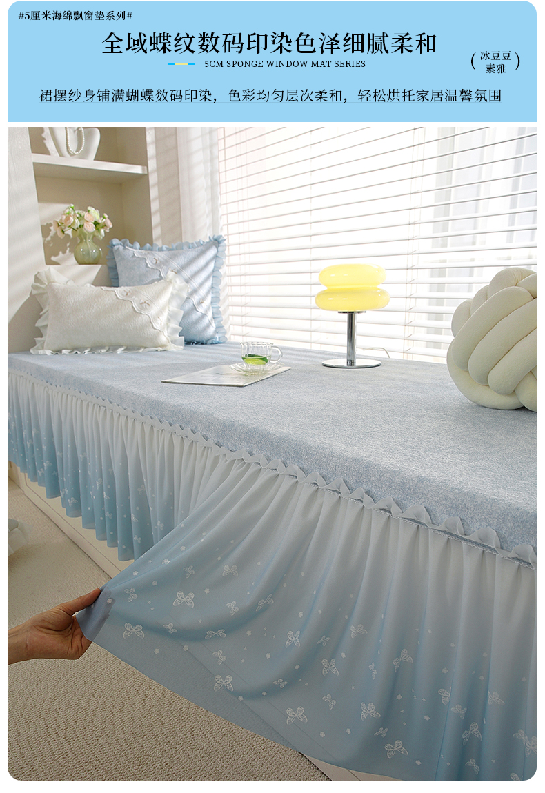 共鸣沙发垫 2026新款冰豆豆素雅5厘米海绵飘窗垫系列 素雅蓝色