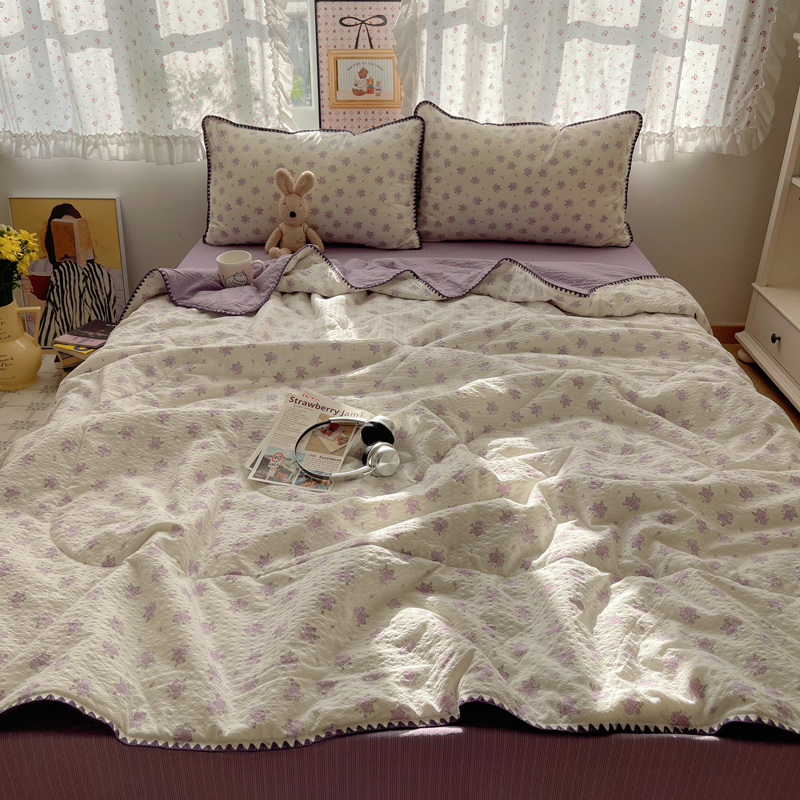 (总)梵希雅 2026新款A类木棉皱皱纱夏被,薄荷奶绿,蜜桃花田,奶油彩糖,青格花信,樱粉星野,紫雾花野,组合图