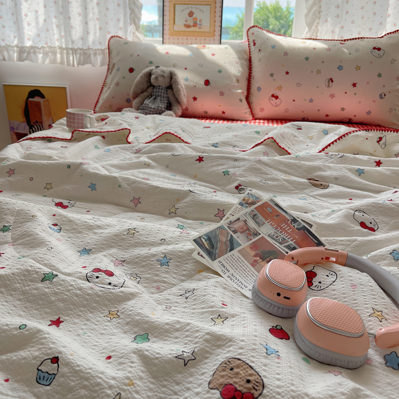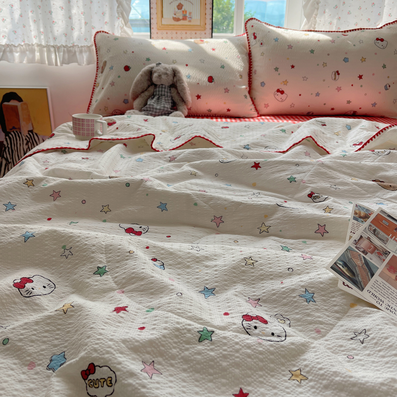 (总)梵希雅 2026新款泡芙纱三角针床盖夏被四件套,波点,粉色小心心,格格心,旧街星星,咖豹纹,兰爱心,描线小猫粉,描线小猫咖,浅川纹,森林描绘,田园兔,星光凯蒂,只闻花香,紫陌,KT 猫