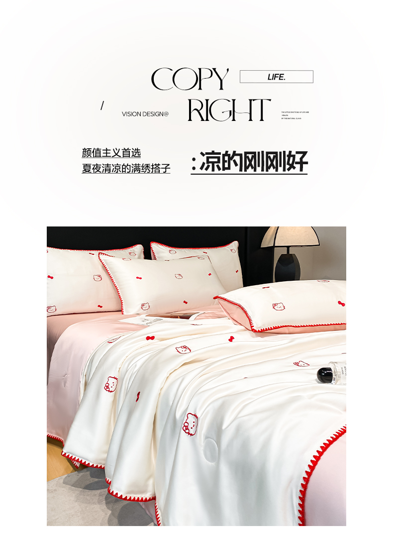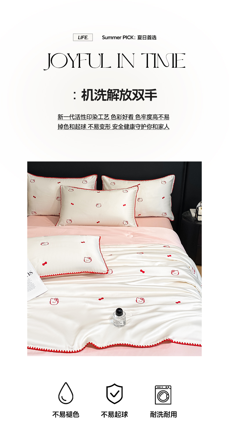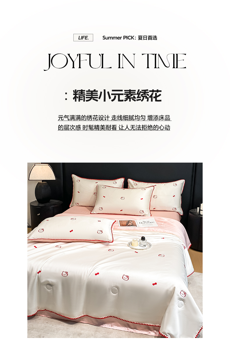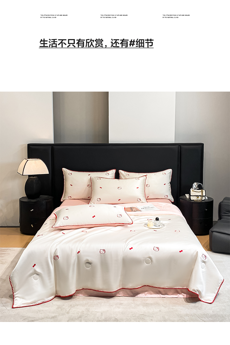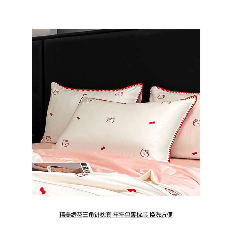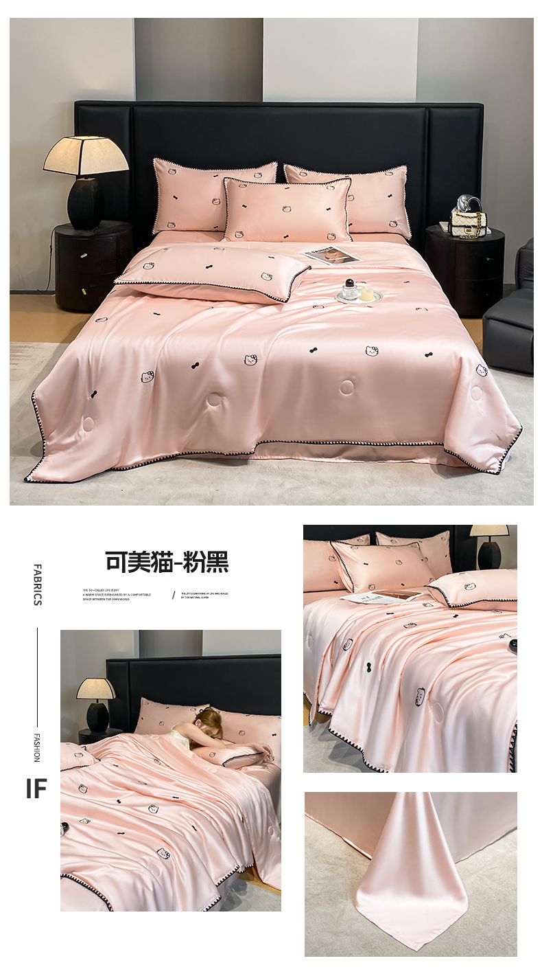 当前位置: 91家纺网 > 商品网购 > 被子 > 夏被 > 如一 2026新款水洗冰丝刺绣三角针工艺夏被四件套 可美猫-白粉