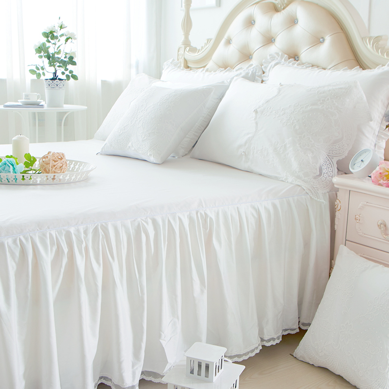 商品名称:菊上家纺 60S贡缎全棉纯色蕾丝床裙四件套 轻奢风 珍珠白色