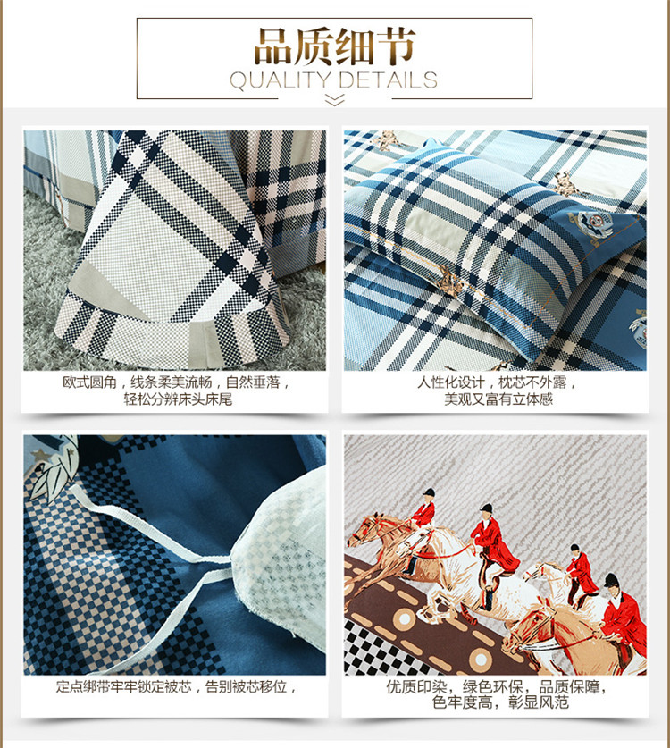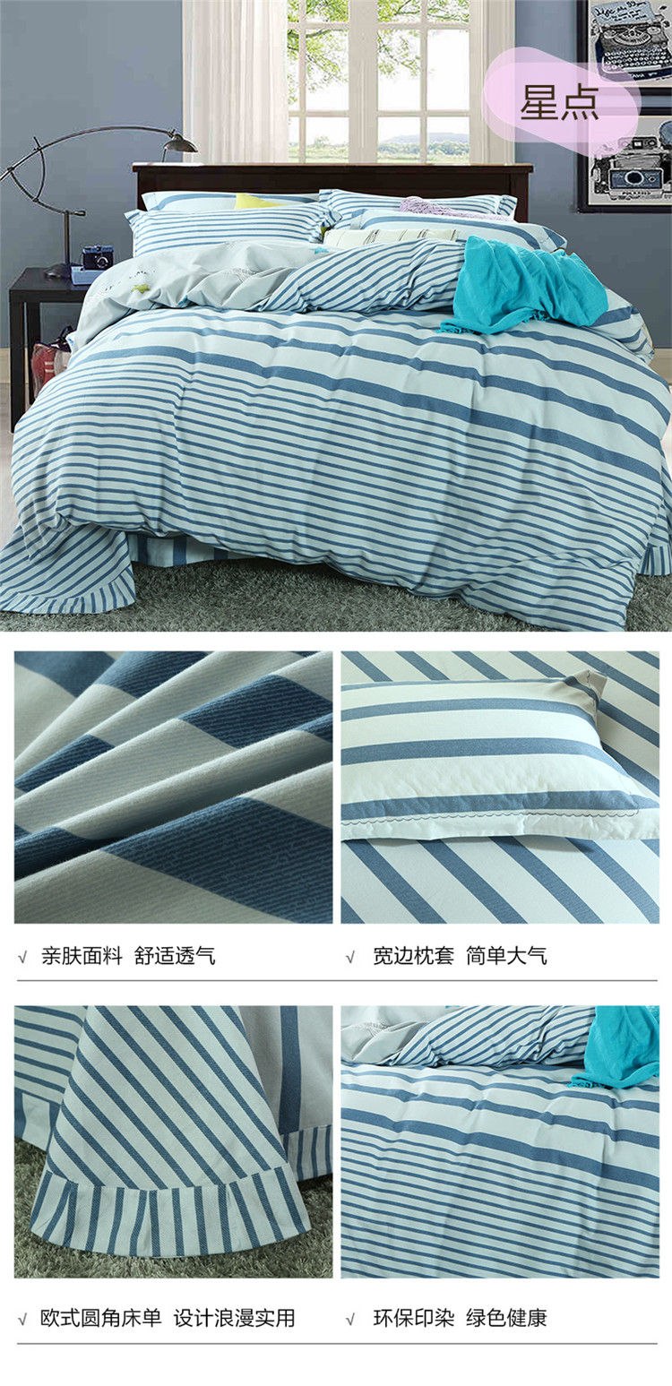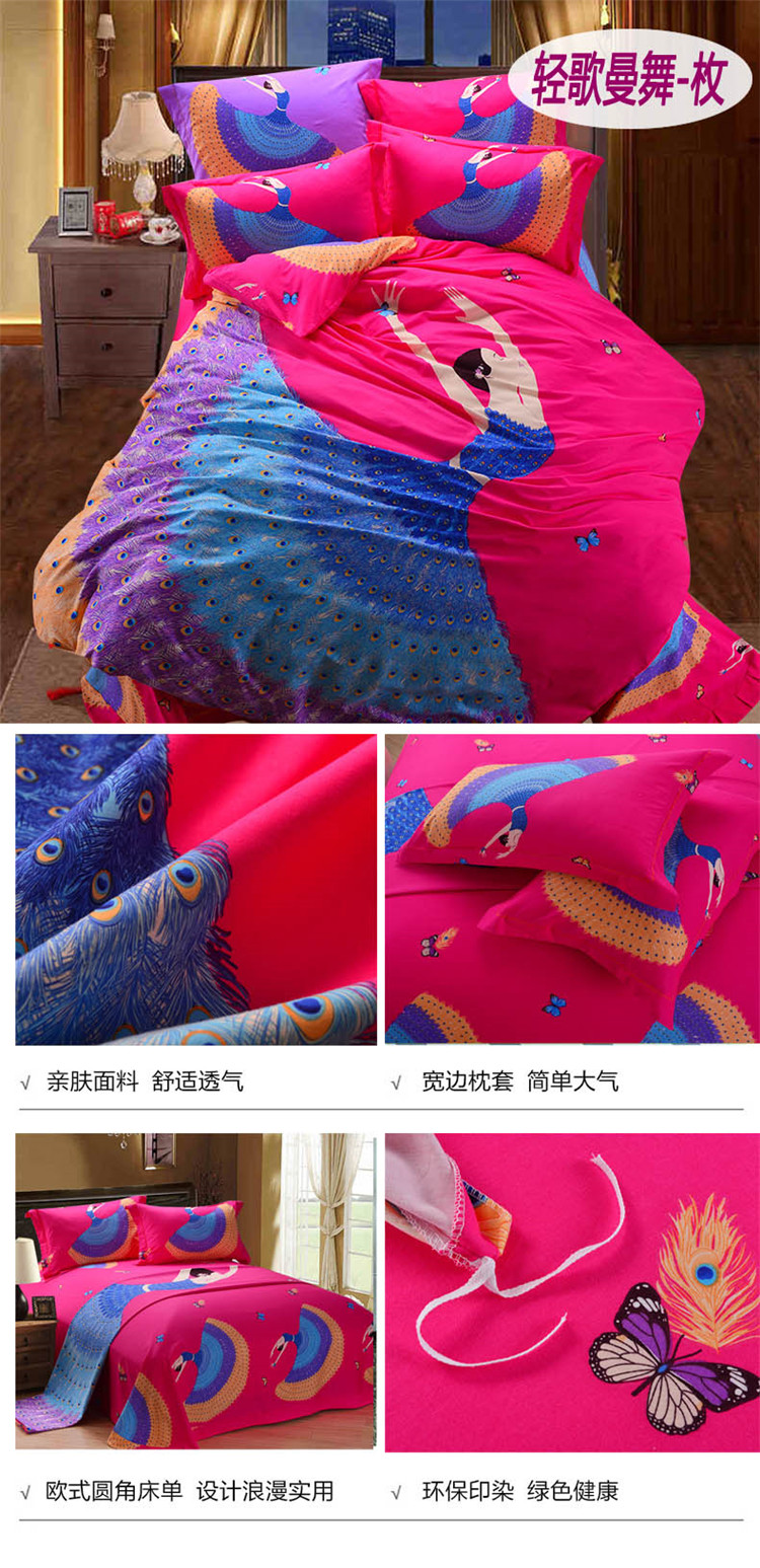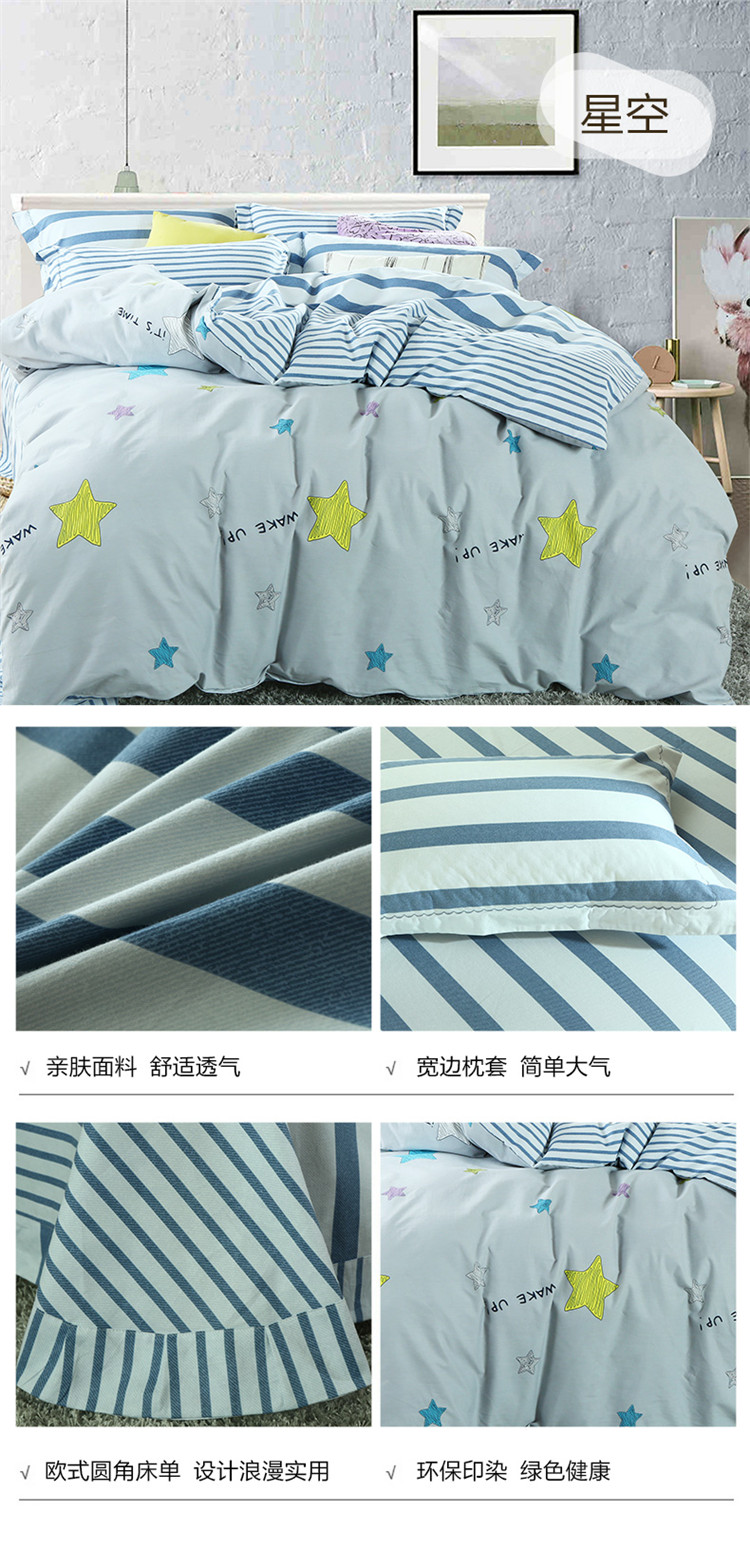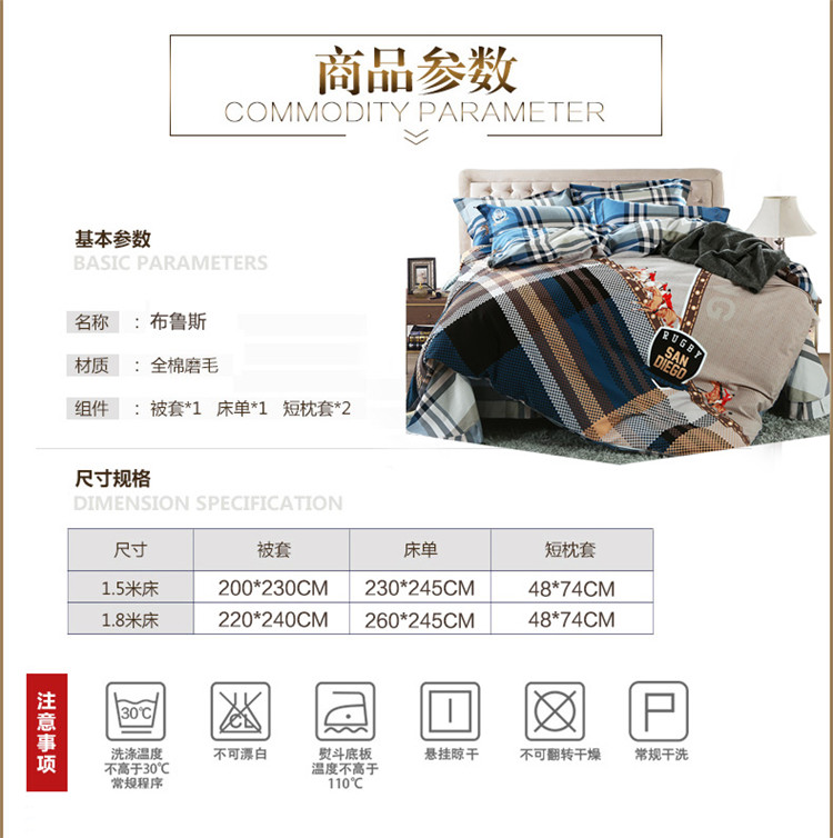 | 1.5四件套 | 被套:200*230cm床单:250*250cm(圆角) 枕套:48*74cm*2 | 180元 |