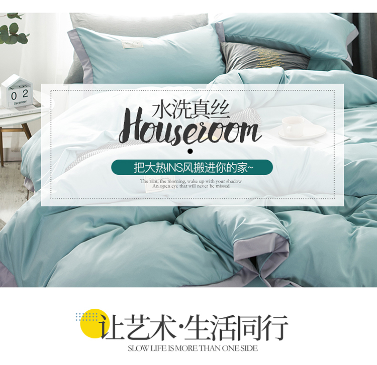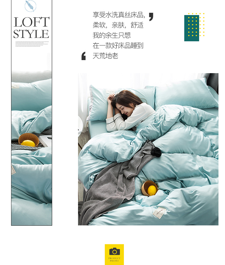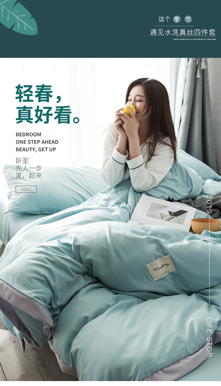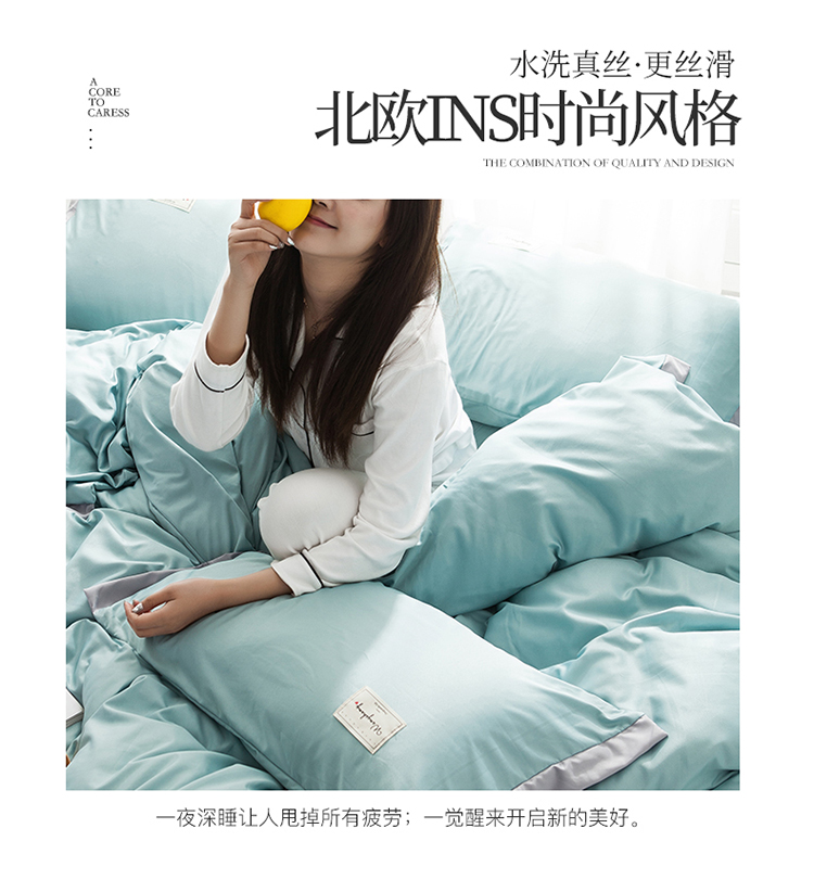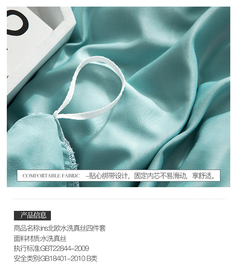商品名称:万盛家纺 水洗真丝四件套 薄荷绿