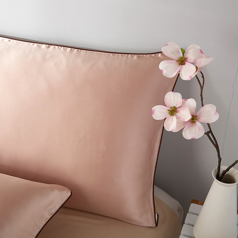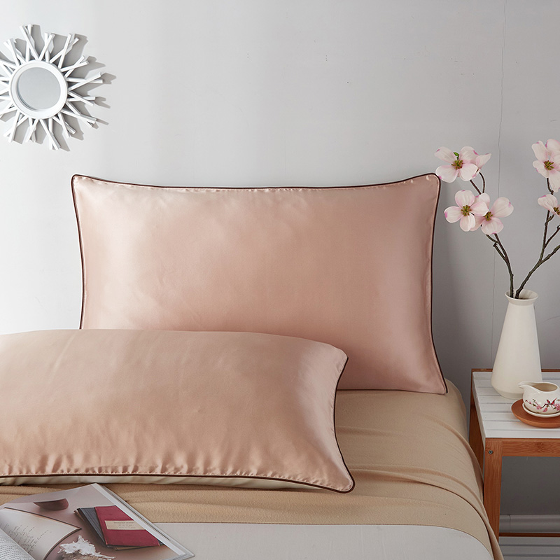朗莎家纺 2019新款真丝滚边枕套48X74cm/对 香槟金