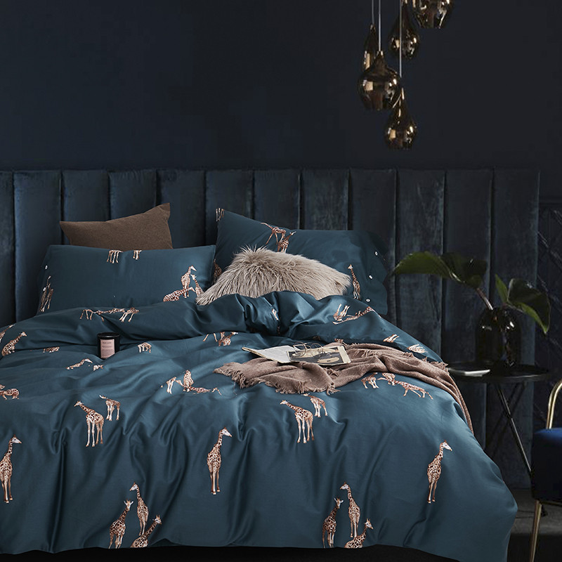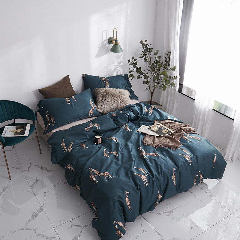 (总)优然居2020新款100支婴儿暖绒棉轻奢风刺绣四件套,大地黄加藏青,复古咖青,轻奢粉灰,霜绿大地色,霜绿复古色