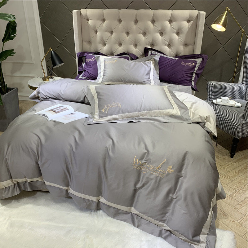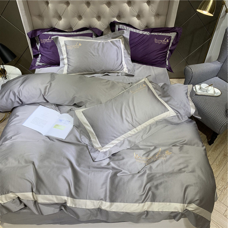 太古汇 2019新款纯色拼色绣花四件套 板岩灰