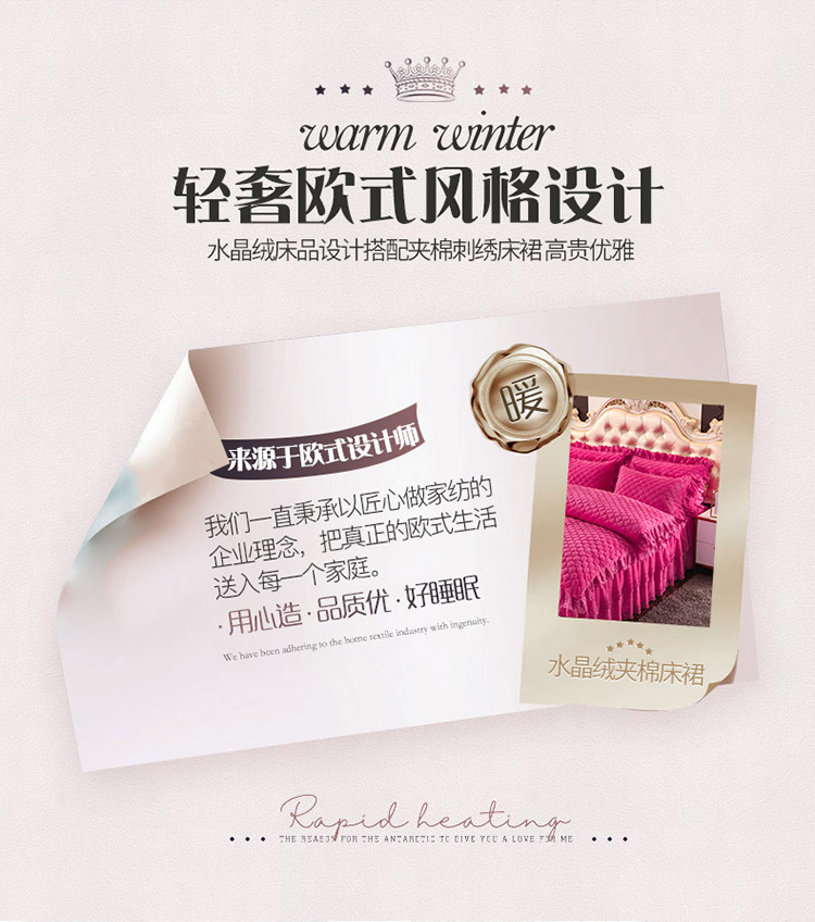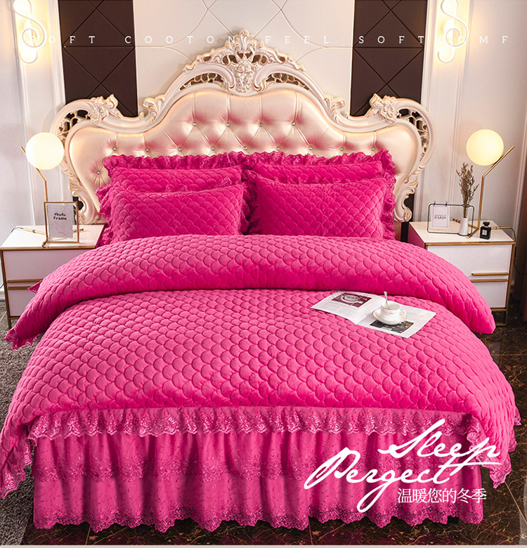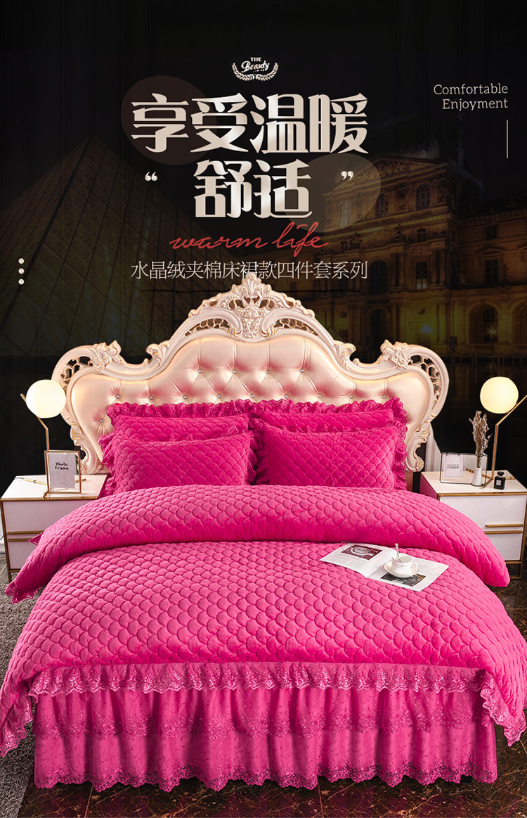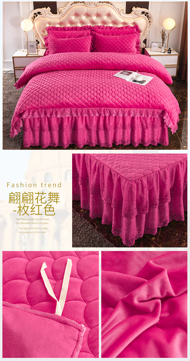 (总)恒爱 2022秋冬水晶绒翩翩花舞夹棉床裙四件套,大红色,豆沙红,橄榄绿,公主粉,桔色,咖啡色,孔雀绿,拉菲红,罗兰紫,玫红色,美人玉,米白色,米驼色,抹茶绿,浅灰色,紫色
