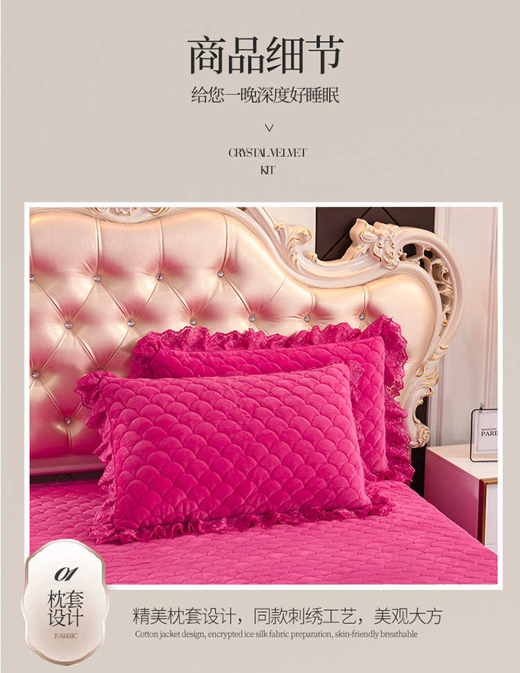 商品名称:恒爱家纺2021新款水晶绒夹棉蕾丝四件套 翩翩花舞-枚红色