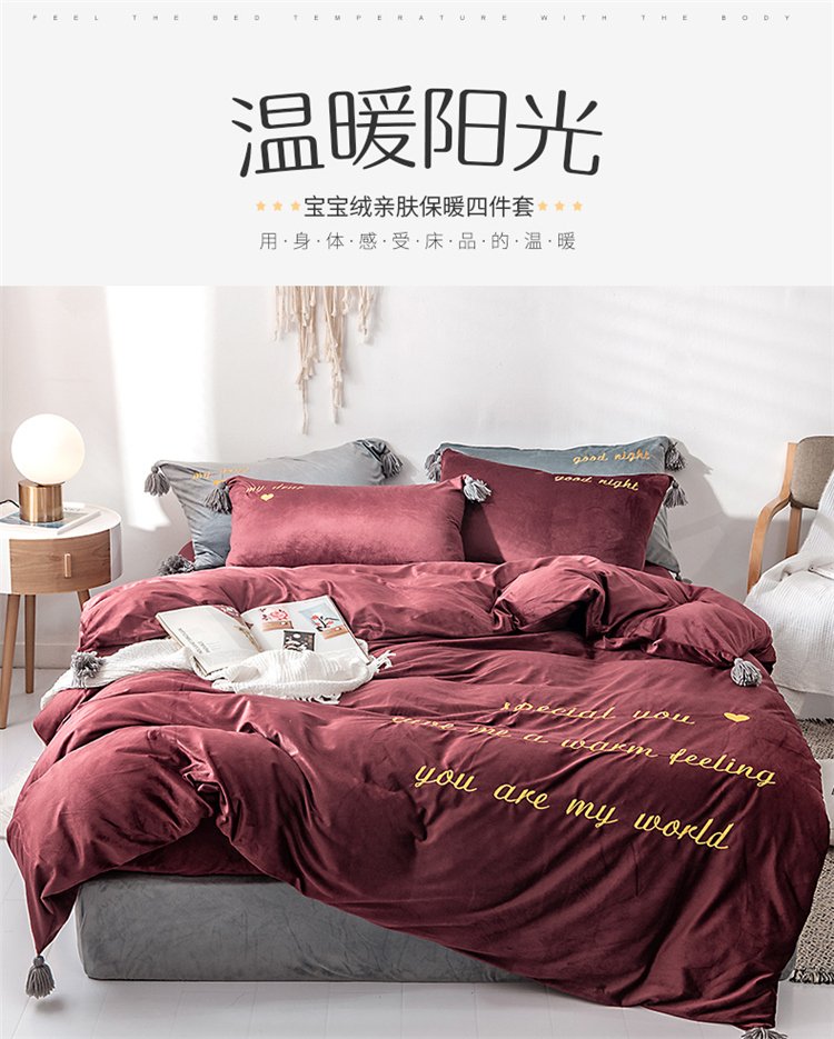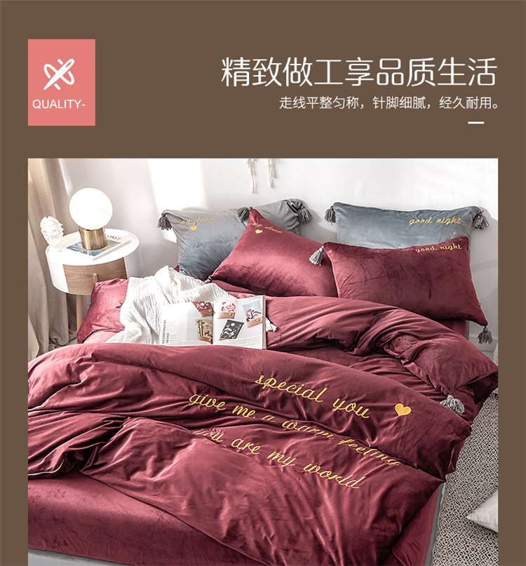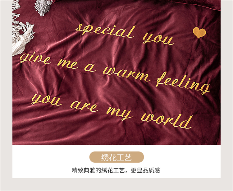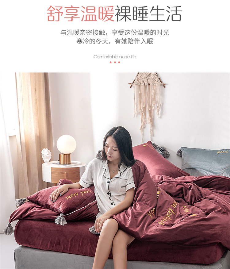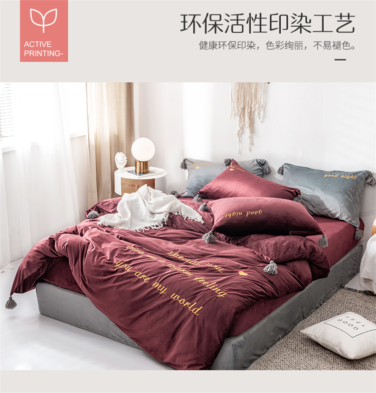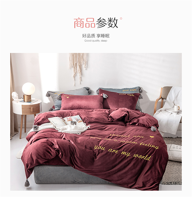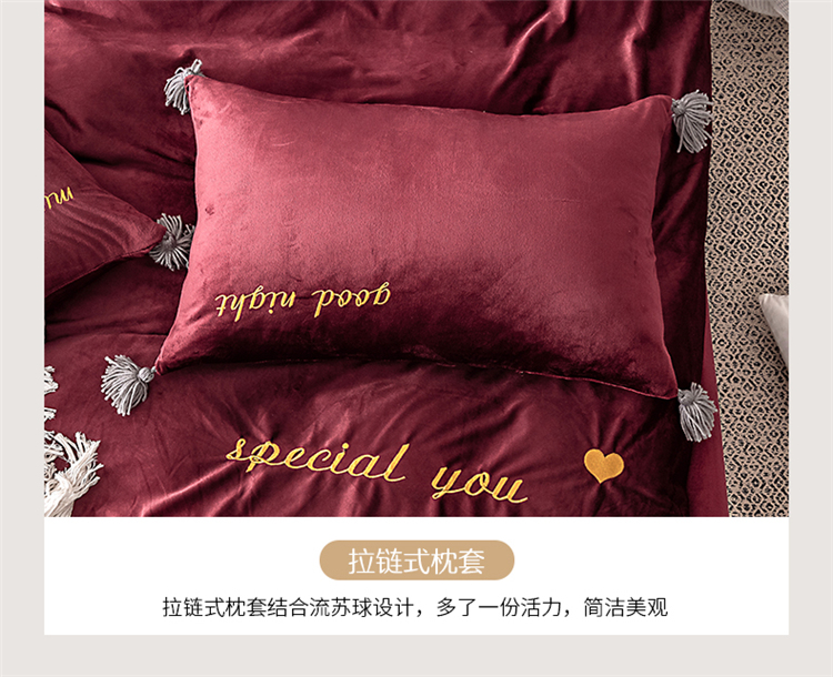 商品名称:北纬27度 2019新款流苏刺绣加厚宝宝绒四件套 妩媚酒红
