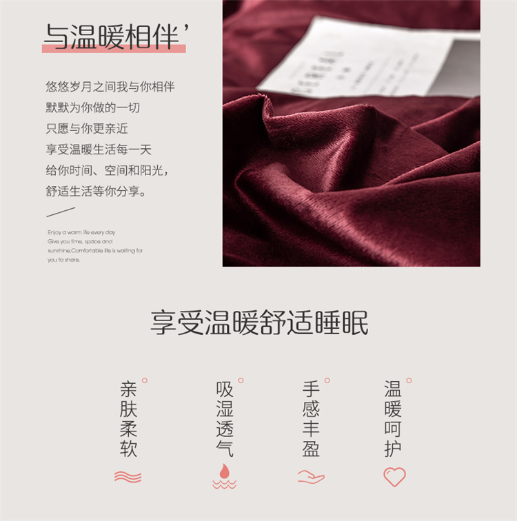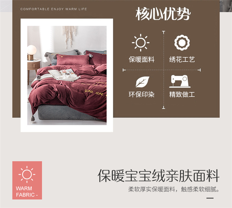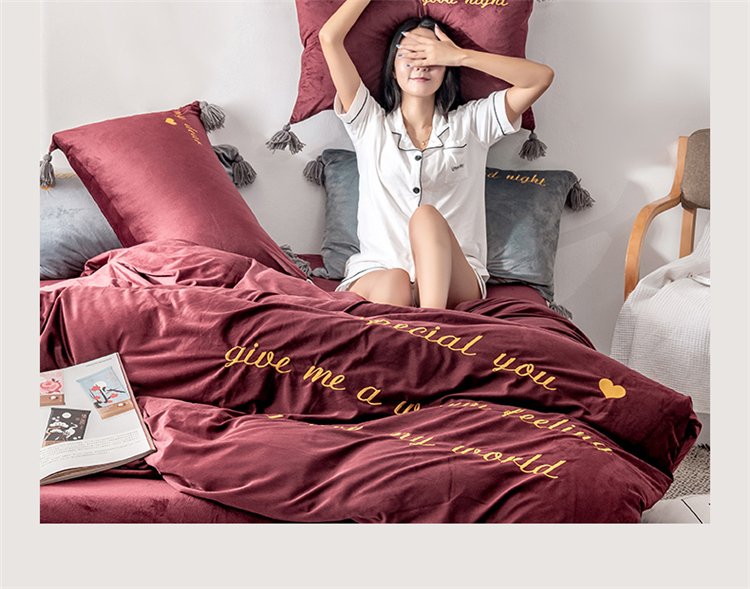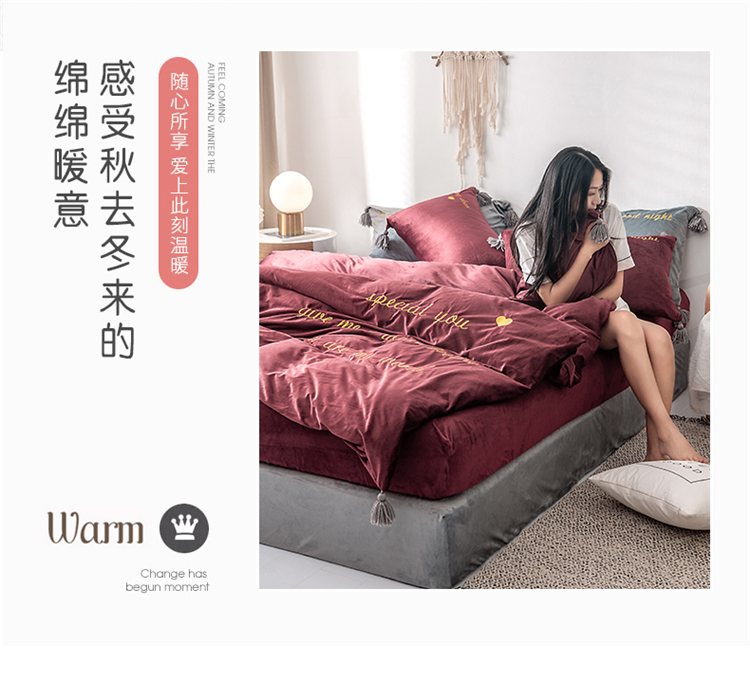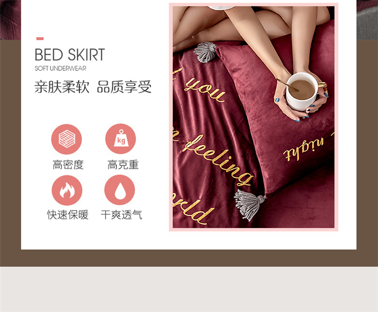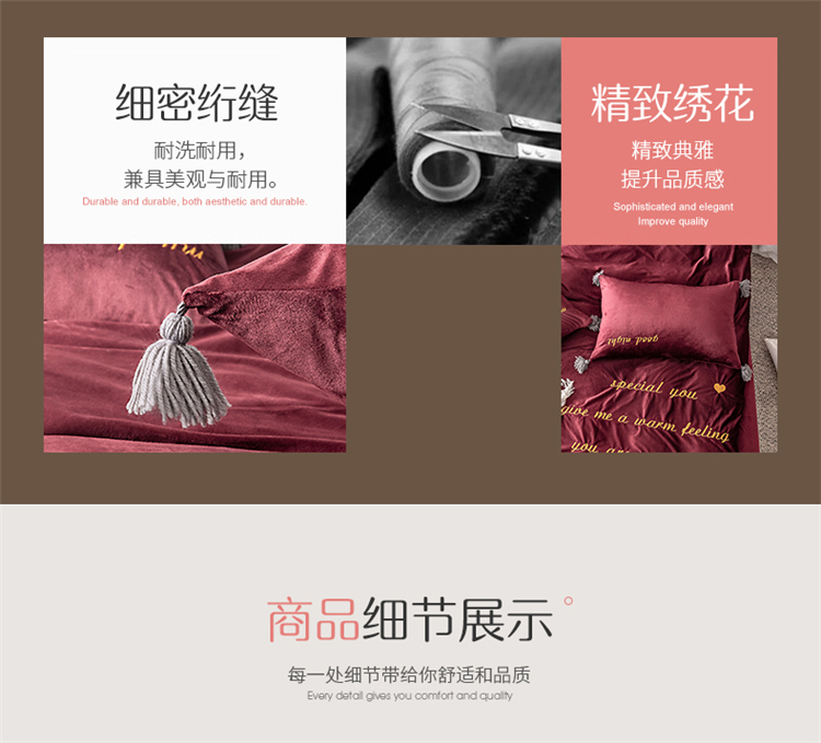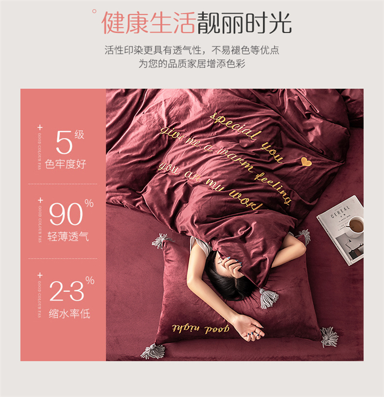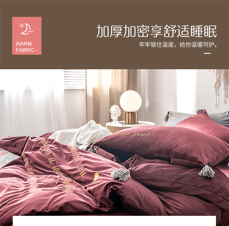 商品名称:北纬27度 2019新款流苏刺绣加厚宝宝绒四件套 妩媚酒红