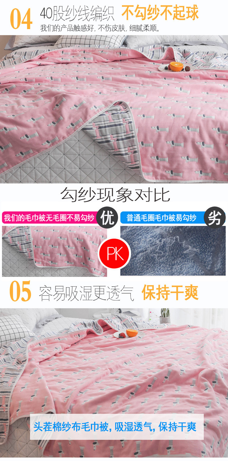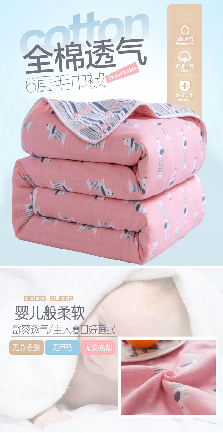 商品名称:朴尔家纺 六层全棉纱布毛巾被 宠物狗-粉