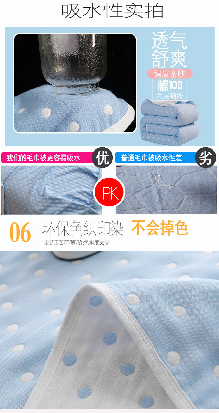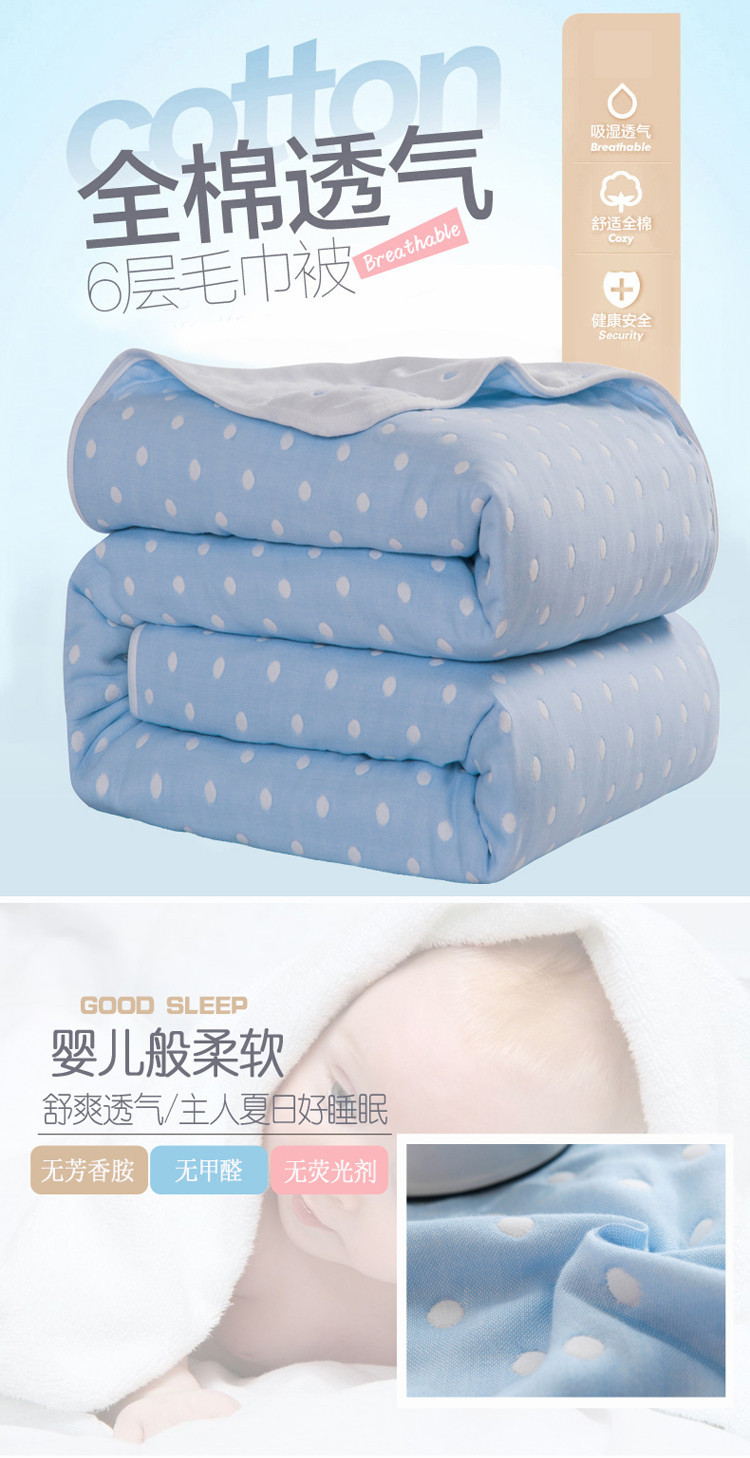 商品名称:朴尔家纺 六层全棉纱布毛巾被 小波点-兰