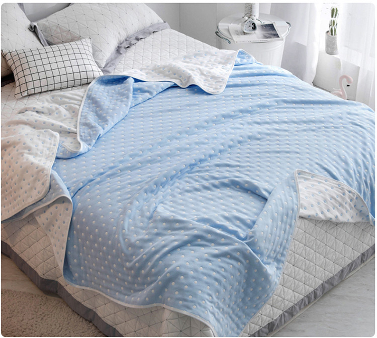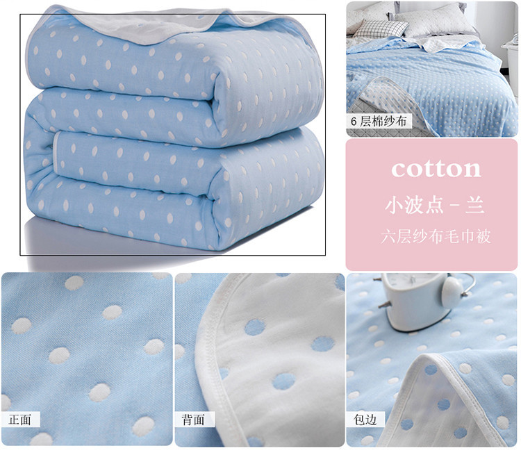 朴尔家纺 六层全棉纱布毛巾被 小波点-兰