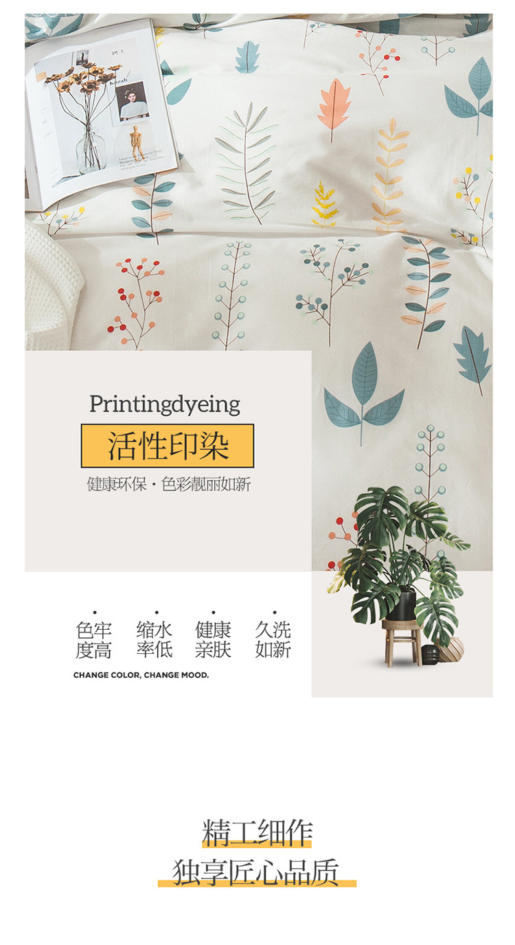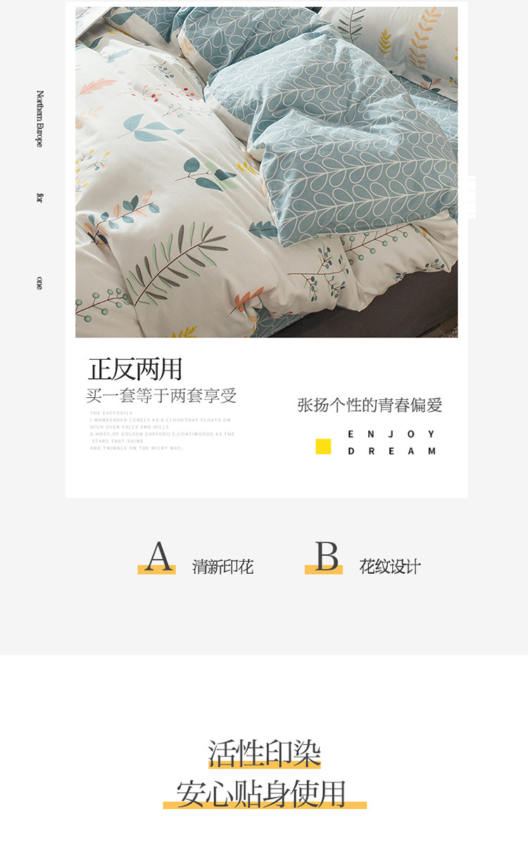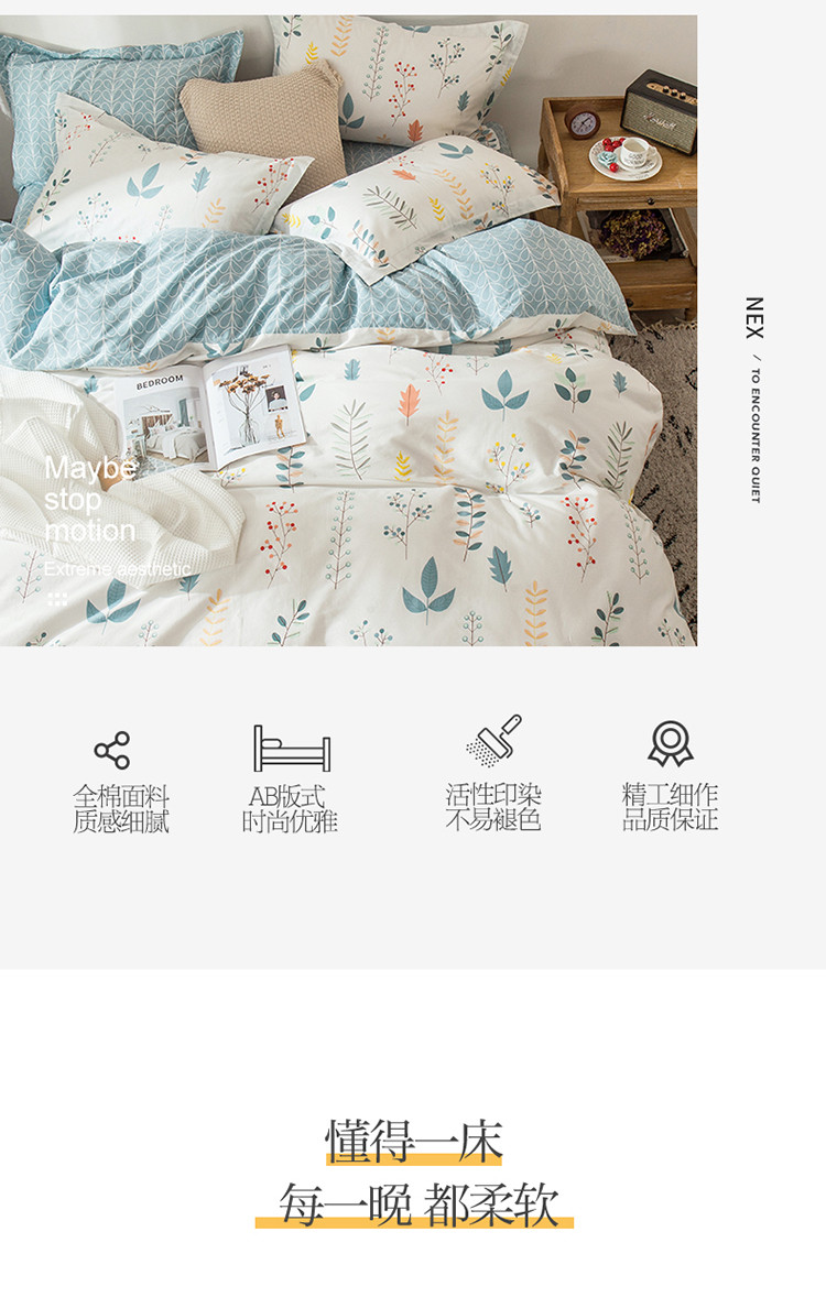 当前位置: 91家纺网 > 商品网购 > 床品套件 > 四件套 > 全棉普通四件套 > 宝齐莱家纺 2020新款13372印花小清新四件套 小幸运