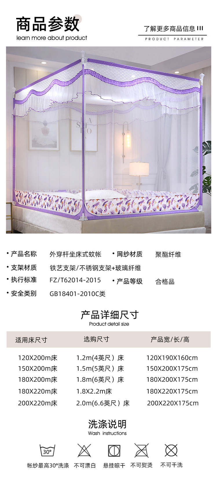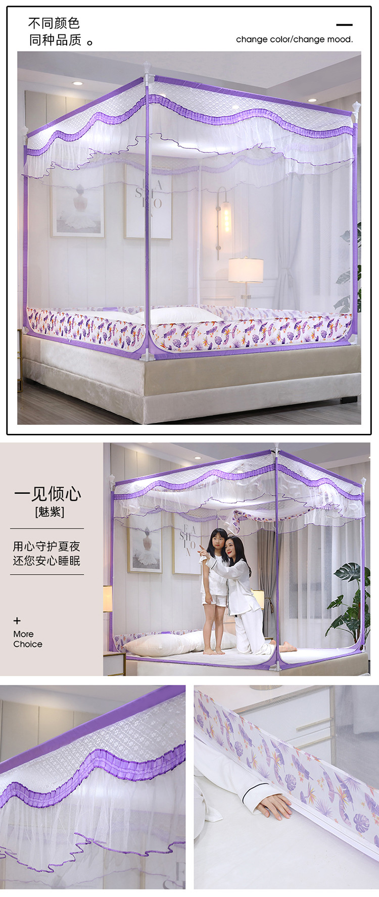 商品名称:伊而梦蚊帐 A01一见倾心坐床式蚊帐 魅紫