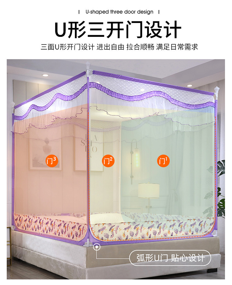 (总)伊而梦蚊帐 2025新款三开门刺绣花边U型A类母婴级加高坐床蚊帐升级版围栏款防摔支架908款,908 碧水蓝,908 冷月灰,908 嫩芽绿,908 秋桂黄,908 霞光粉,908 珍珠白