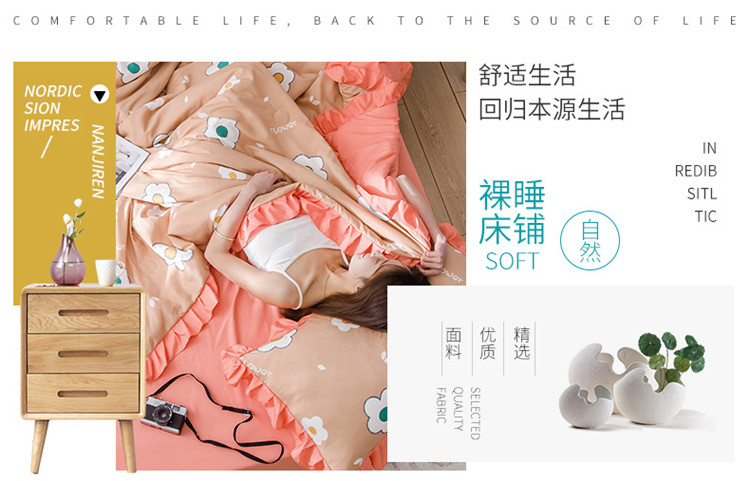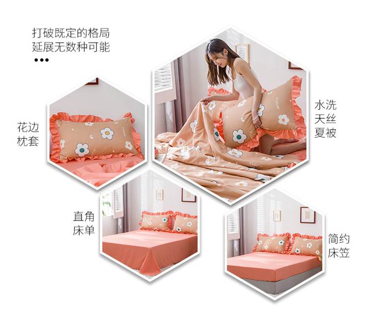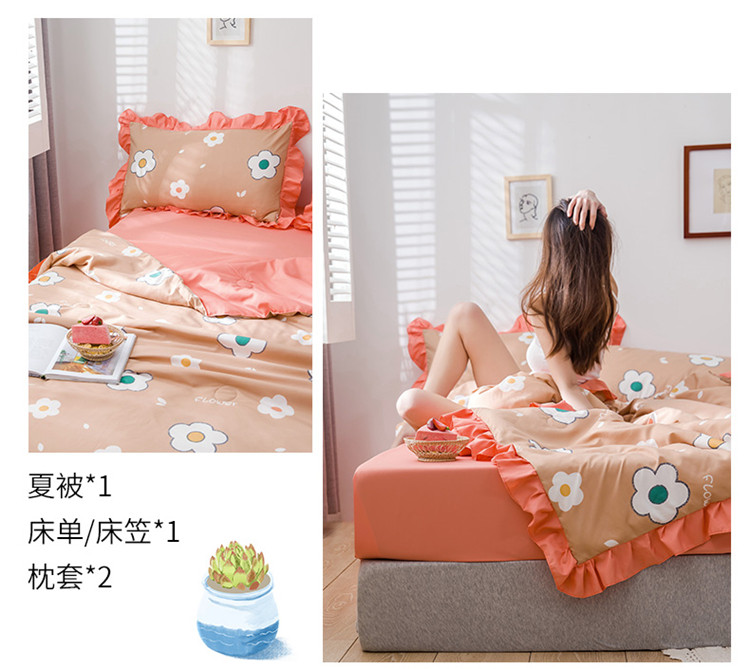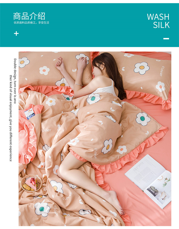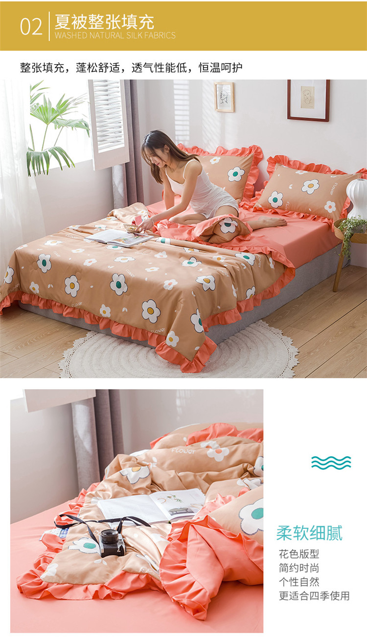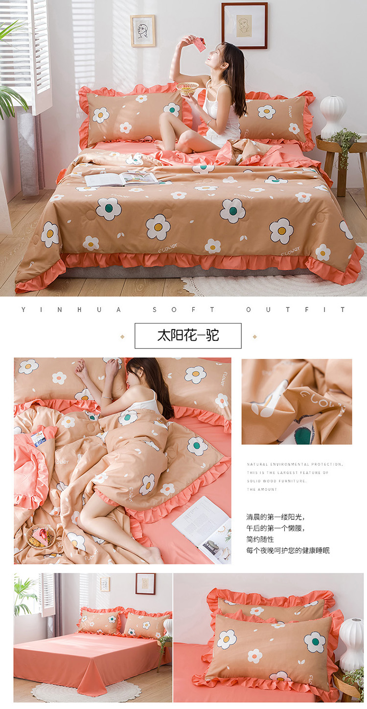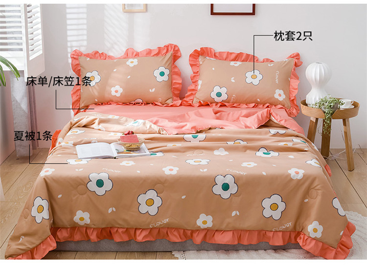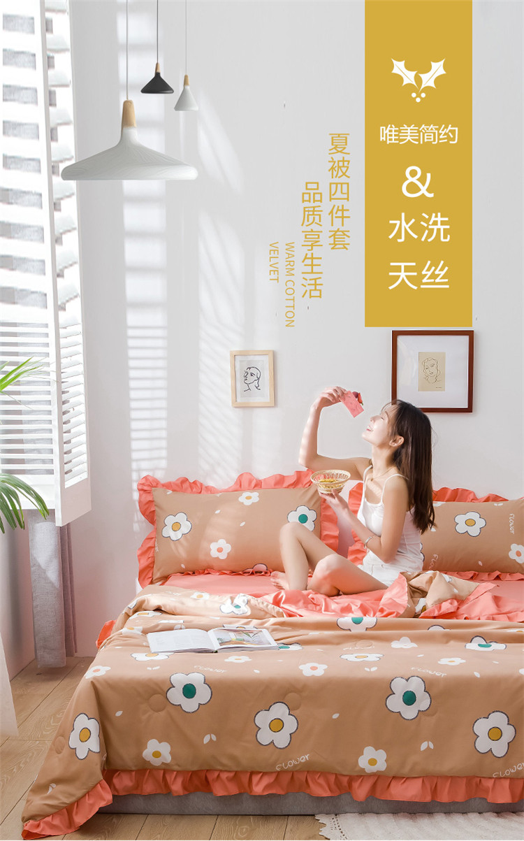 • 91家纺网 家纺一手货源 找家纺 意尚风情 2020年韩版夏被印花水洗真丝四件套 太阳花-驼