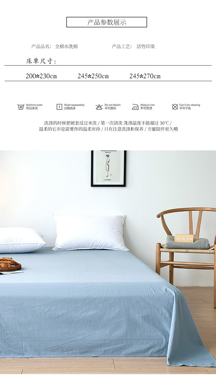 商品名称:MR.PIG全棉水洗棉床单单件简约纯色纯棉学生宿舍单双人被单