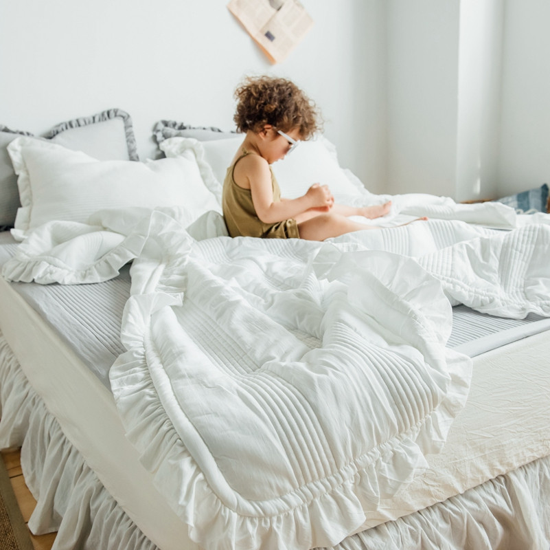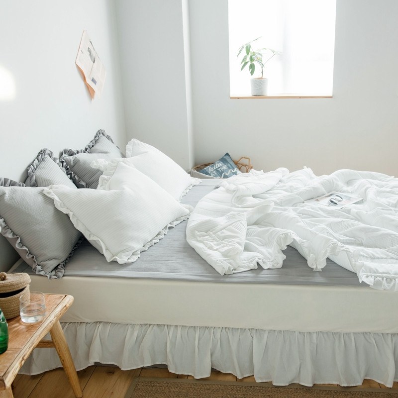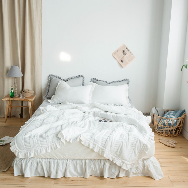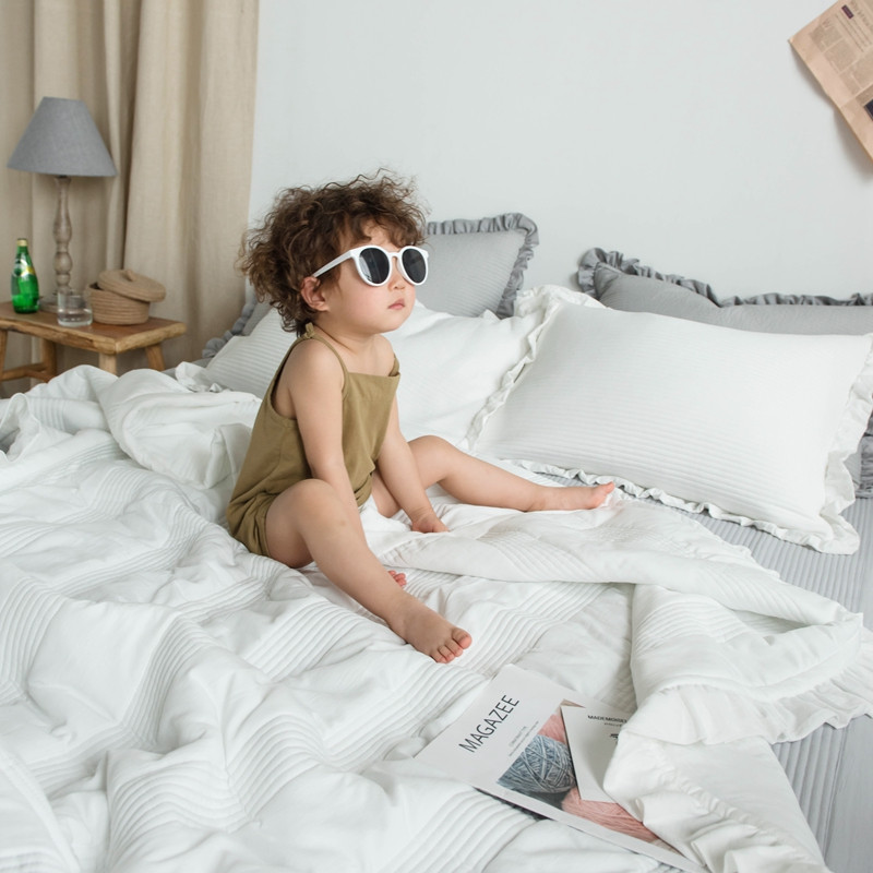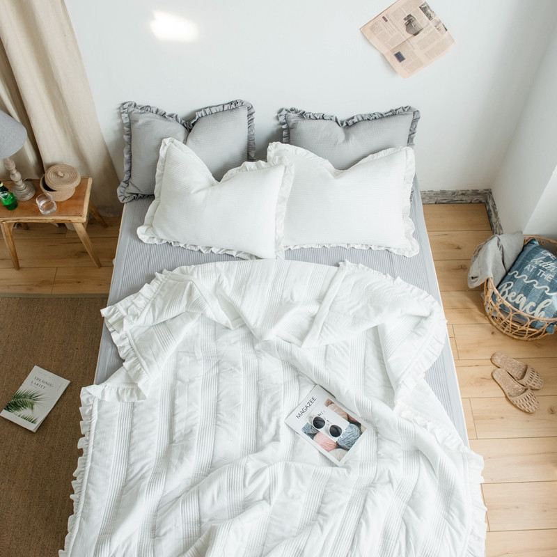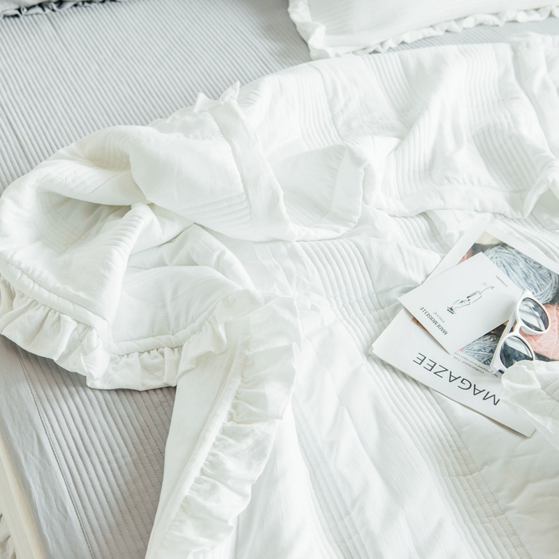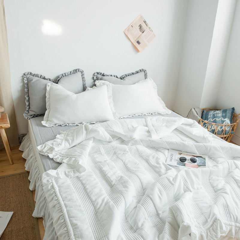 出口韩国外贸款雪纺纱夏被三件套密道床盖空调被棚拍图韩国被白色