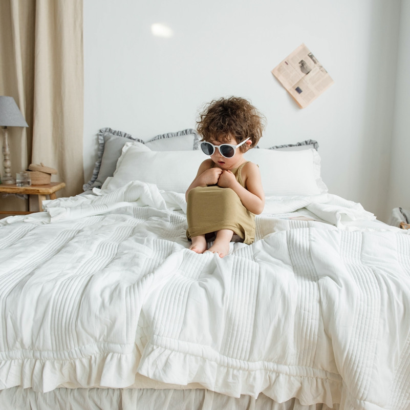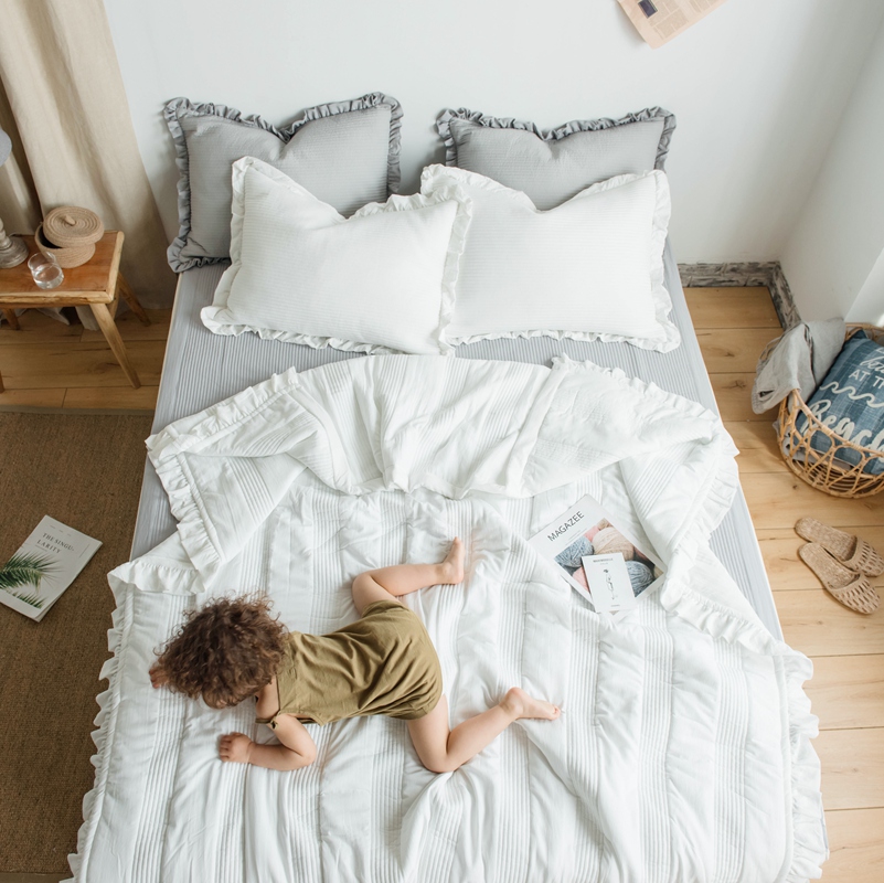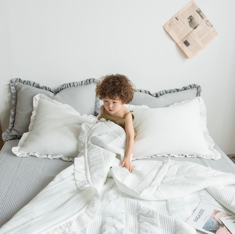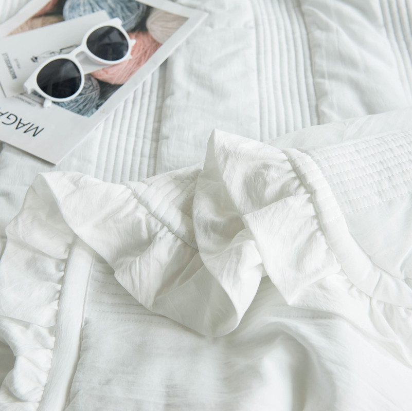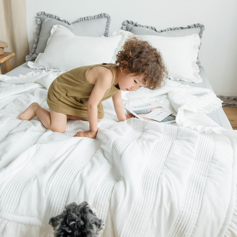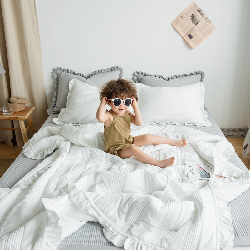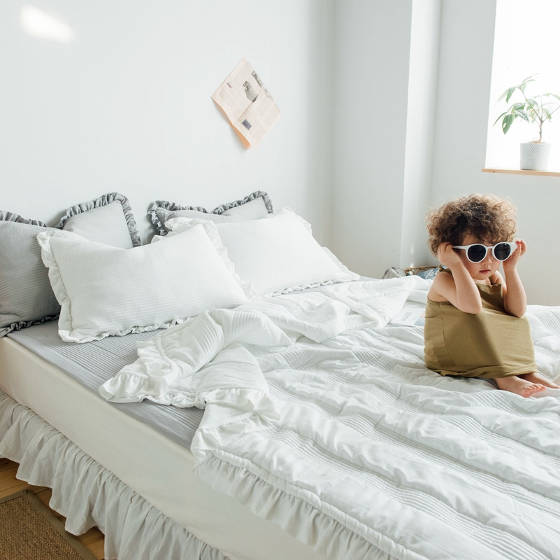 出口韩国外贸款雪纺纱夏被三件套密道床盖空调被棚拍图韩国被白色