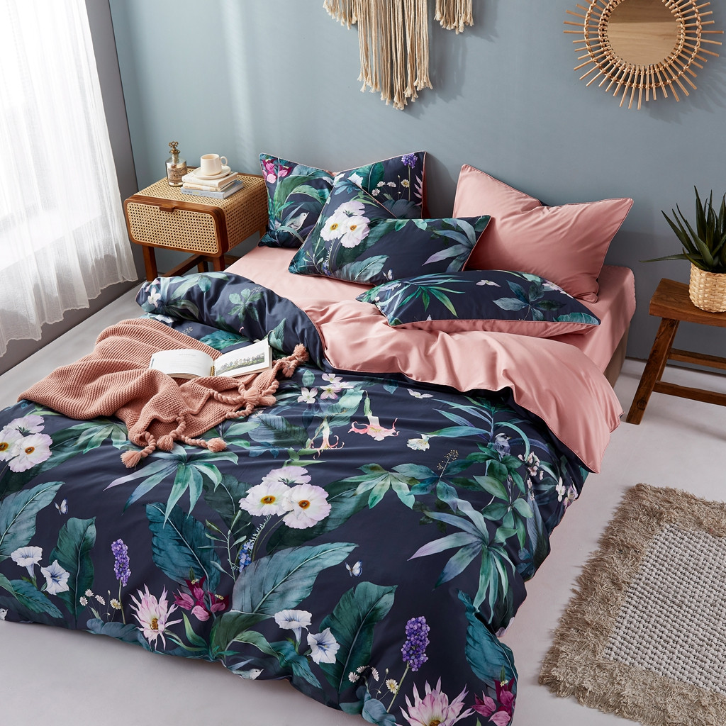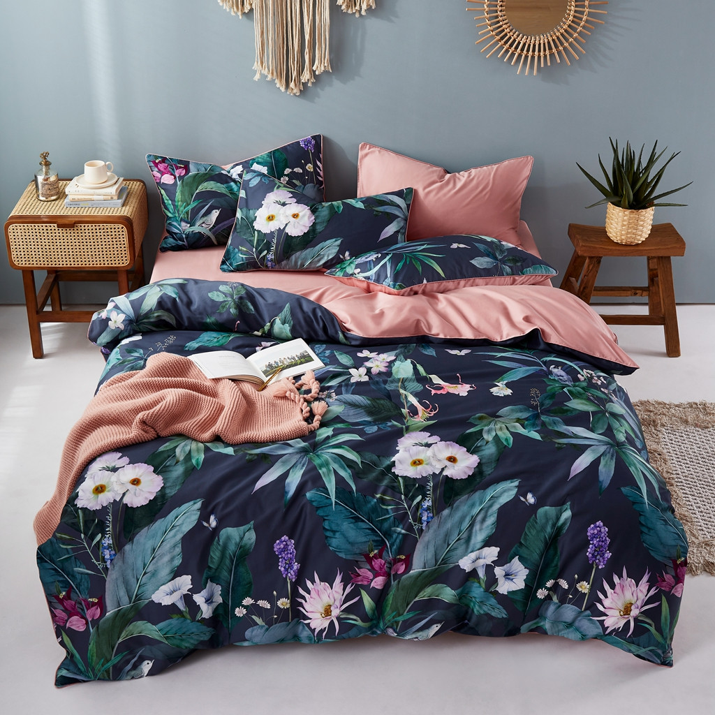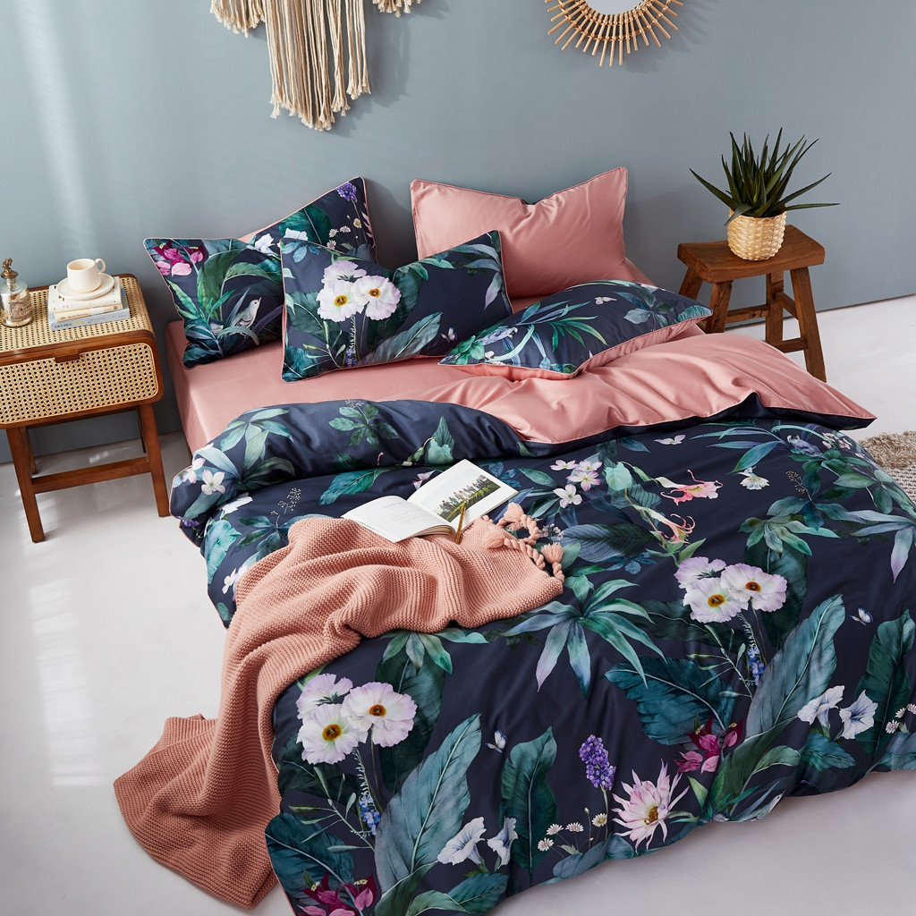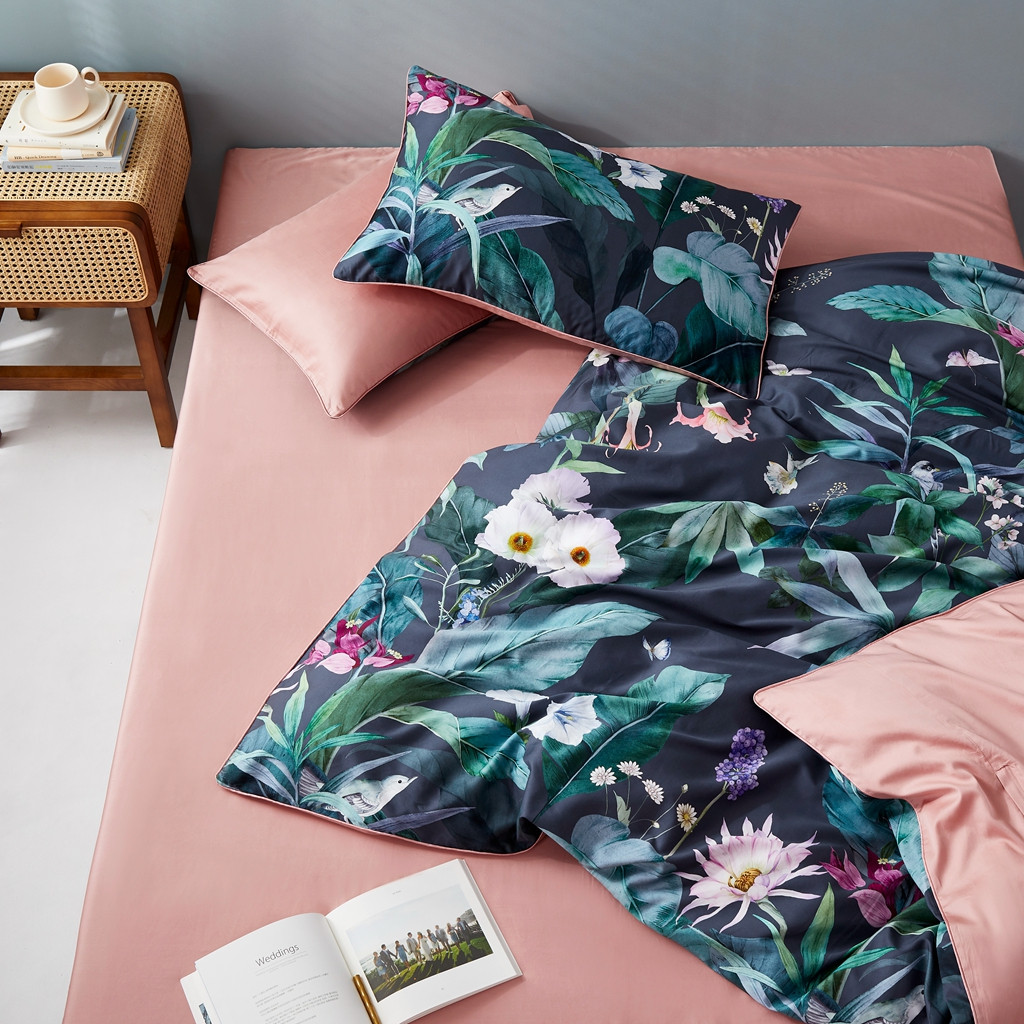 优然居2020新款60S长绒棉数码印印花镶边款四件套 塞西亚蓝