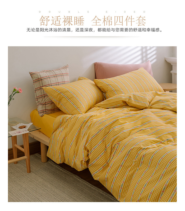 (总)窝米2022新款13370全棉四件套花卉系列,春风里,青柚,秋收,水波纹米驼,水波纹炭黑,恬谧,夏花,云溪红,云溪黄