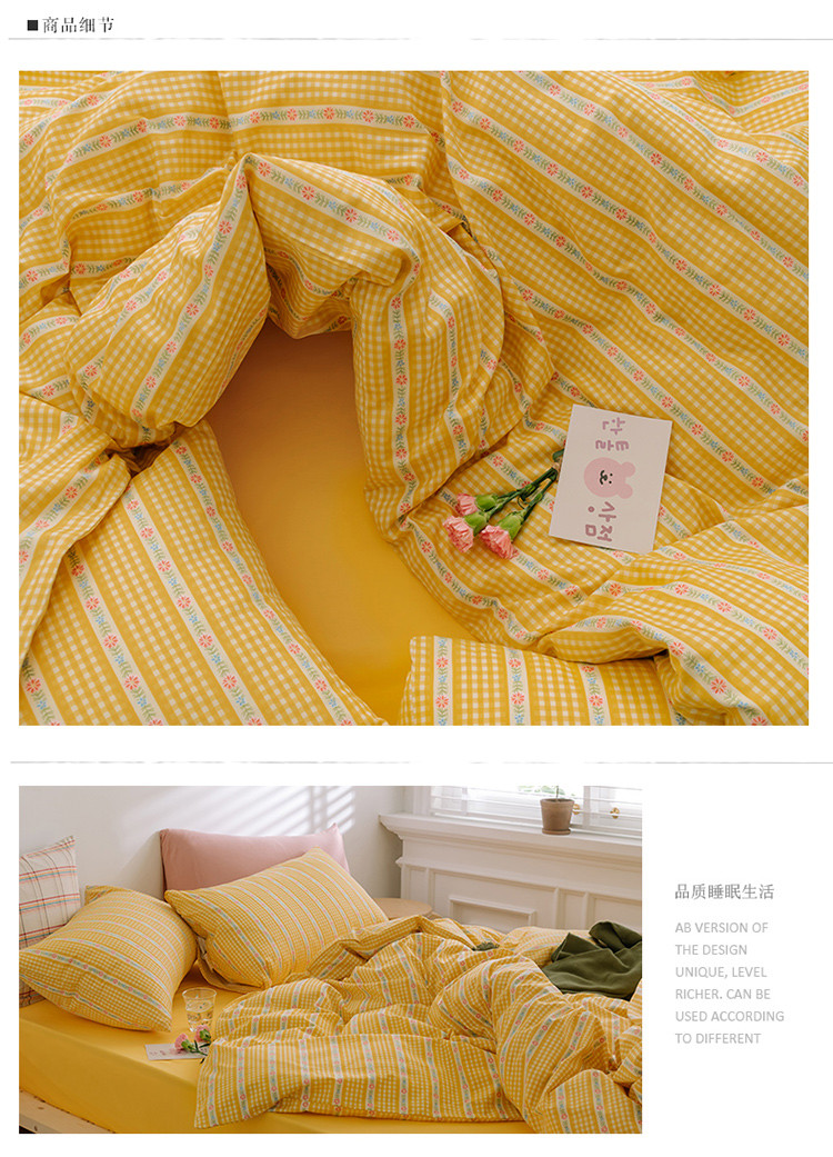 (总)窝米2020新款全棉韩式公主风花边普通款四件套格子系列