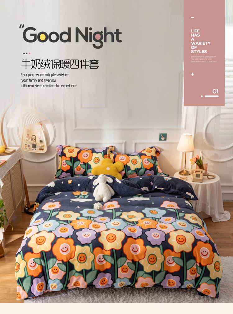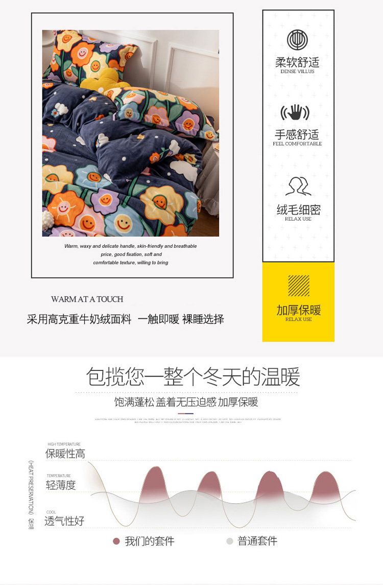 商品名称:珺柔 2020新款高克重牛奶绒四件套 花甜梦
