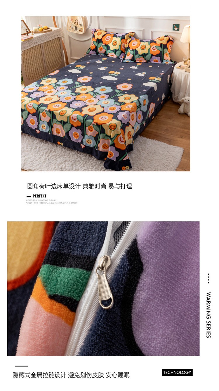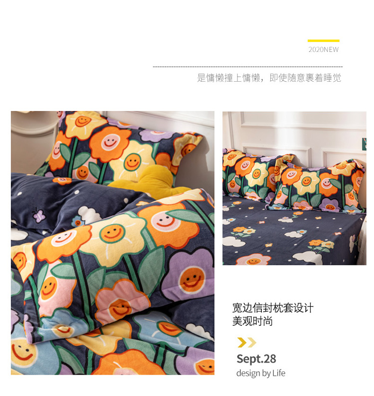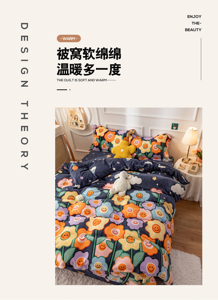 珺柔 2020新款高克重牛奶绒四件套 花甜梦