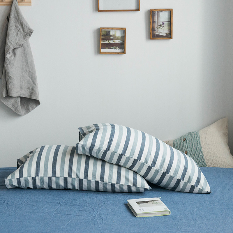 尚品本色 2022新款水洗棉套件系列-单枕套 蓝白条纹/对