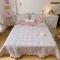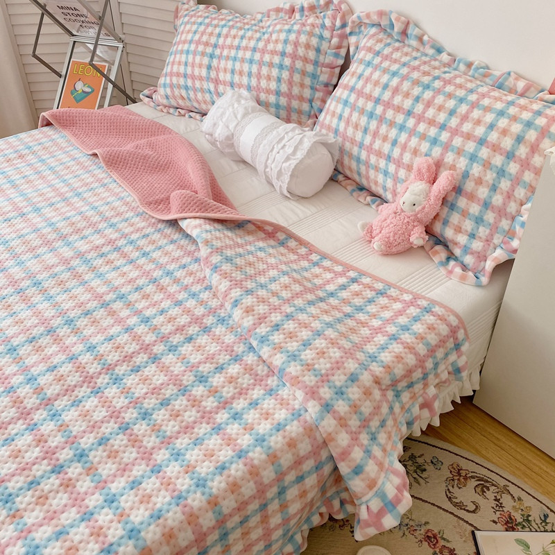 星期八 2020新款奶油色花边牛奶绒床盖 格子粉