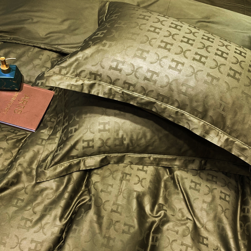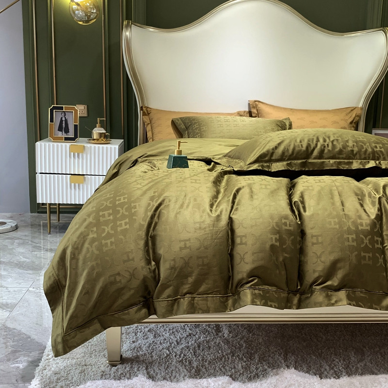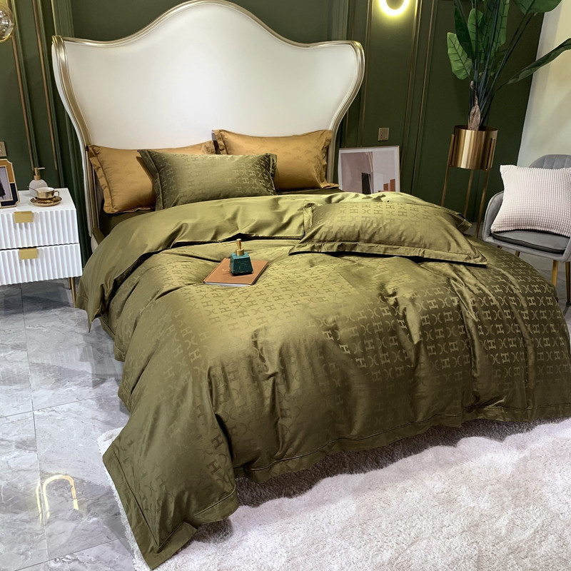 (总)优然居家纺 2026新款100支全工艺提花法式浪漫珍珠扣四件套-米兰系列,米兰法式绿,米兰奶白