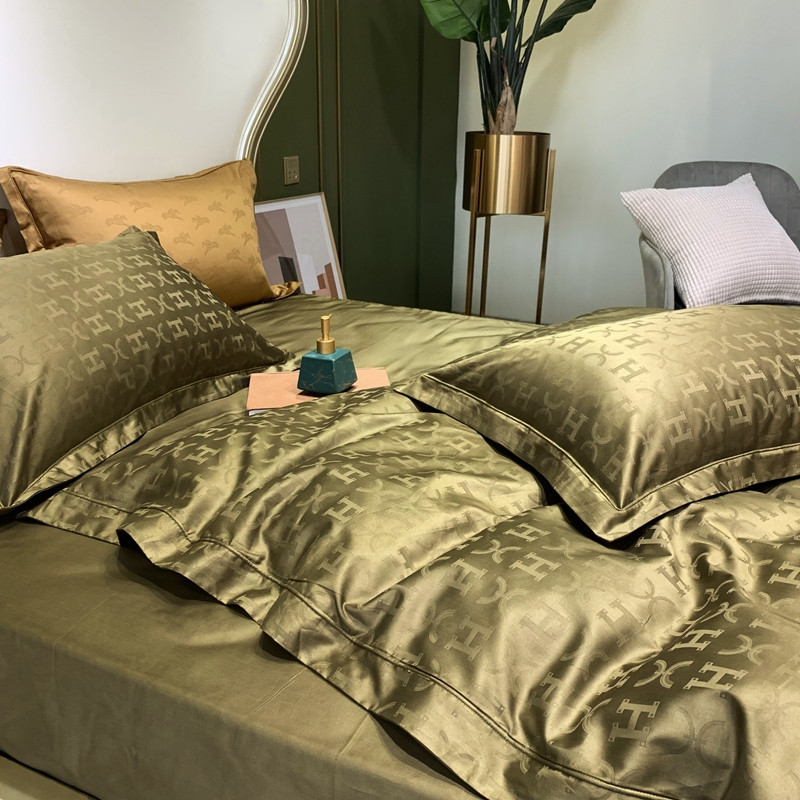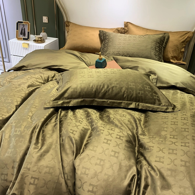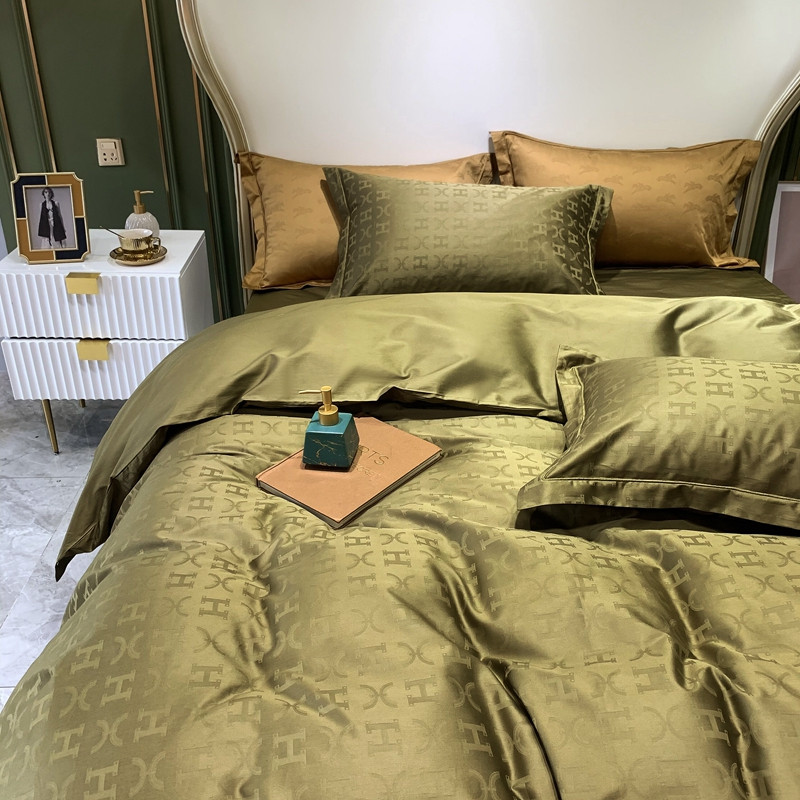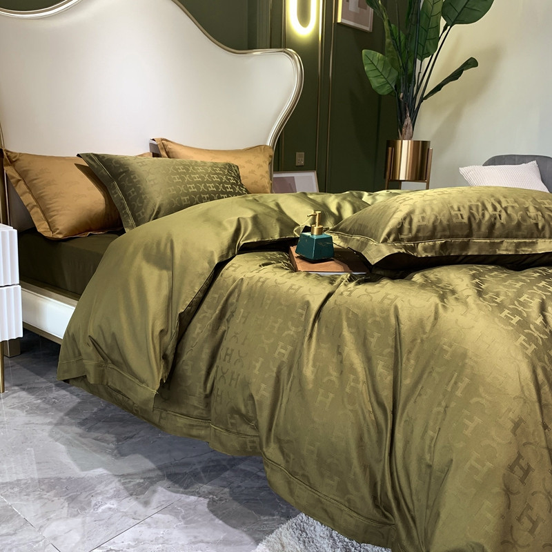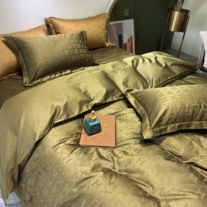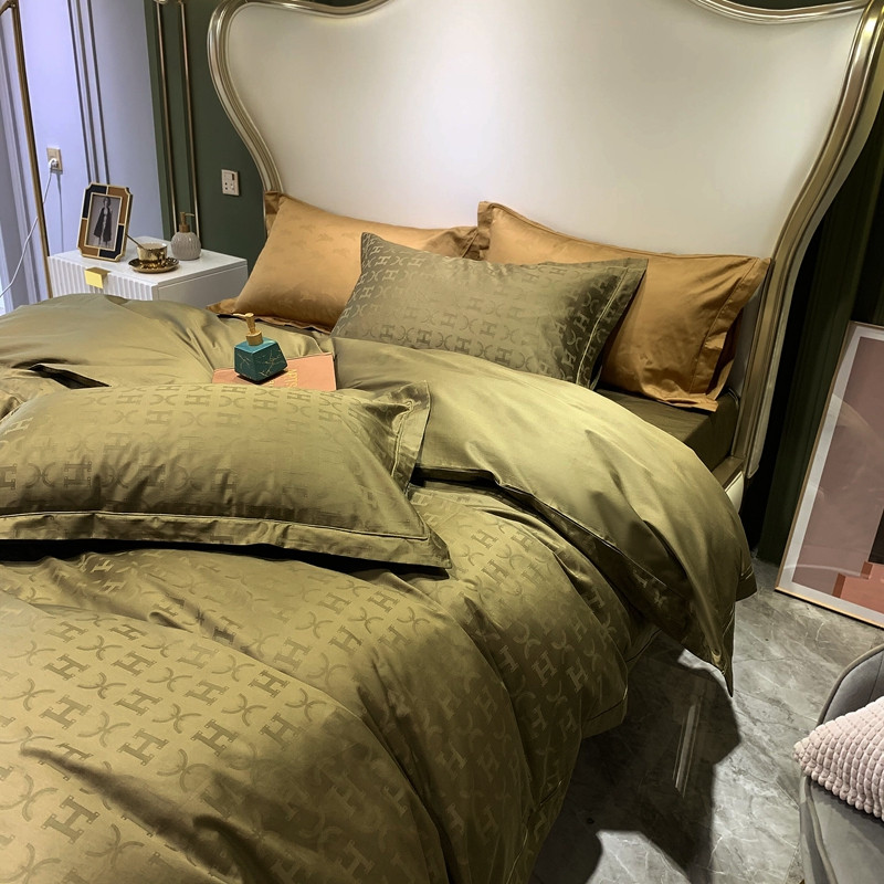 (总)优然居2020新款100支婴儿暖绒棉轻奢风刺绣四件套,大地黄加藏青,复古咖青,轻奢粉灰,霜绿大地色,霜绿复古色