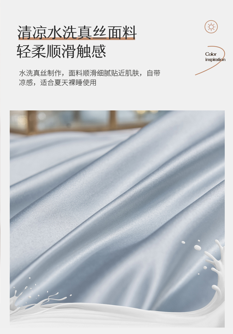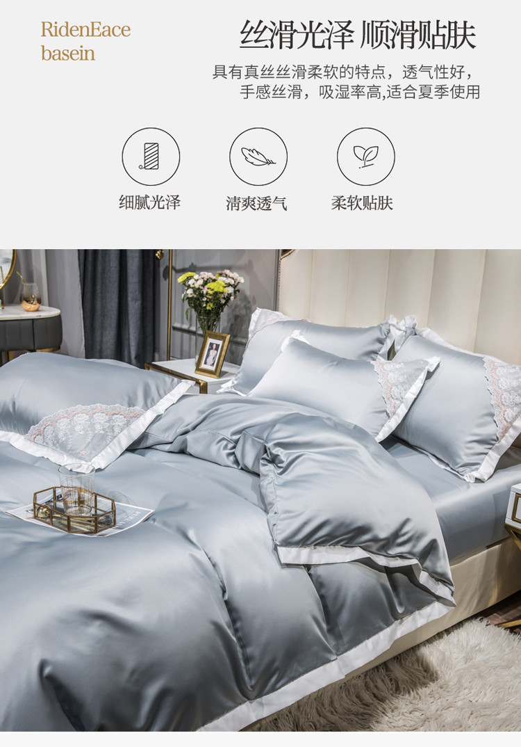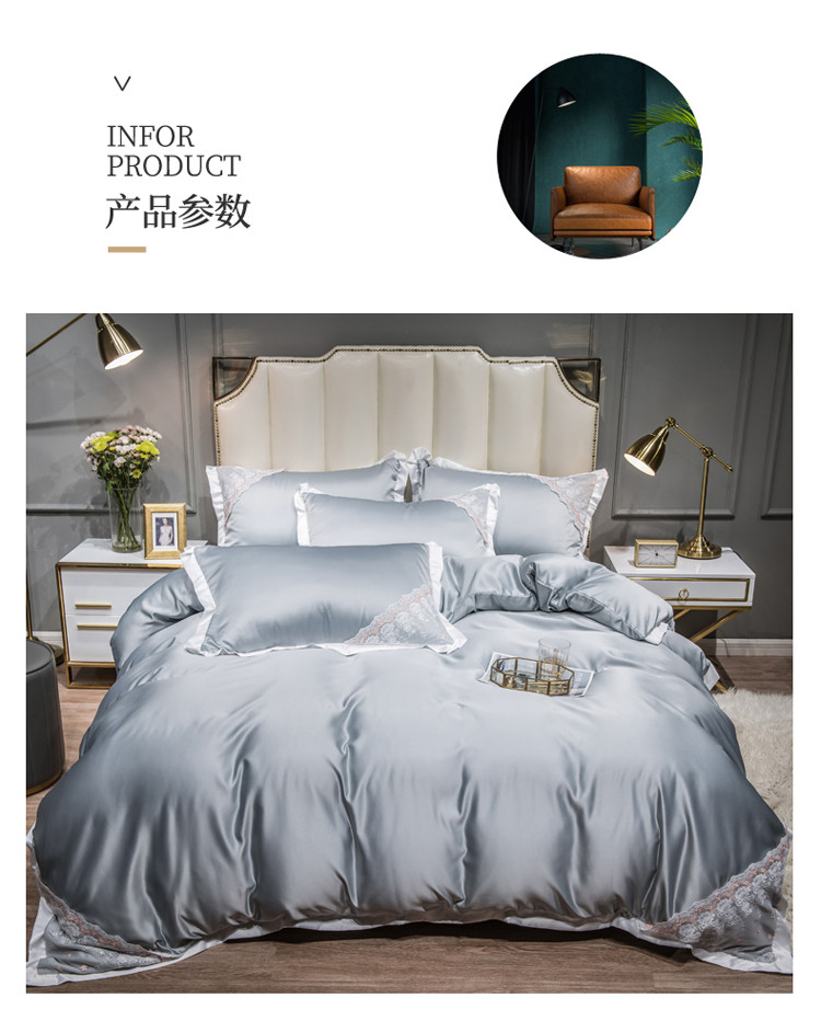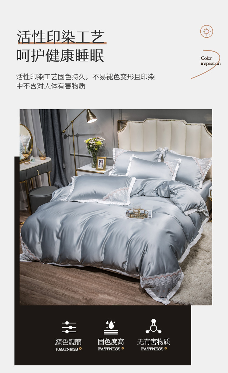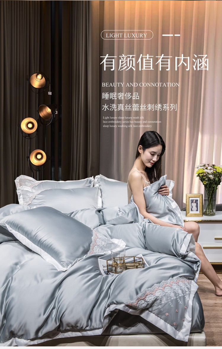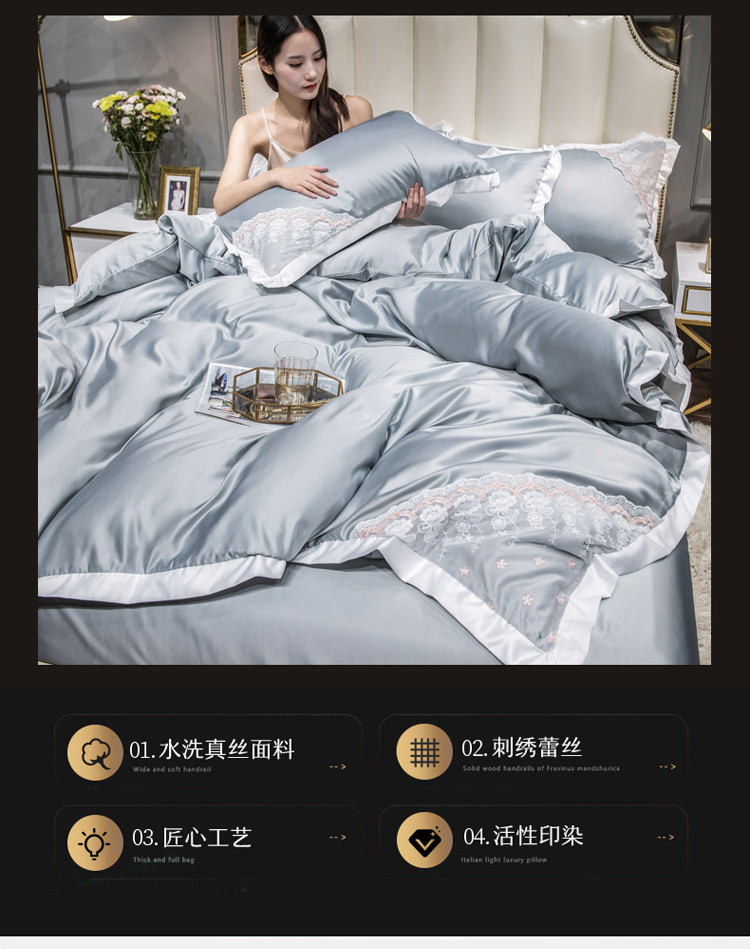 商品名称:绒世界 2021新款水洗真丝公主四件套 高级灰