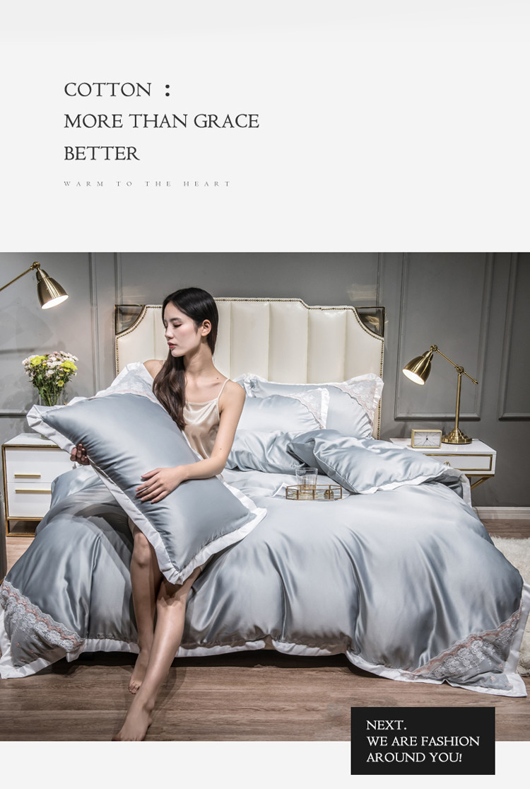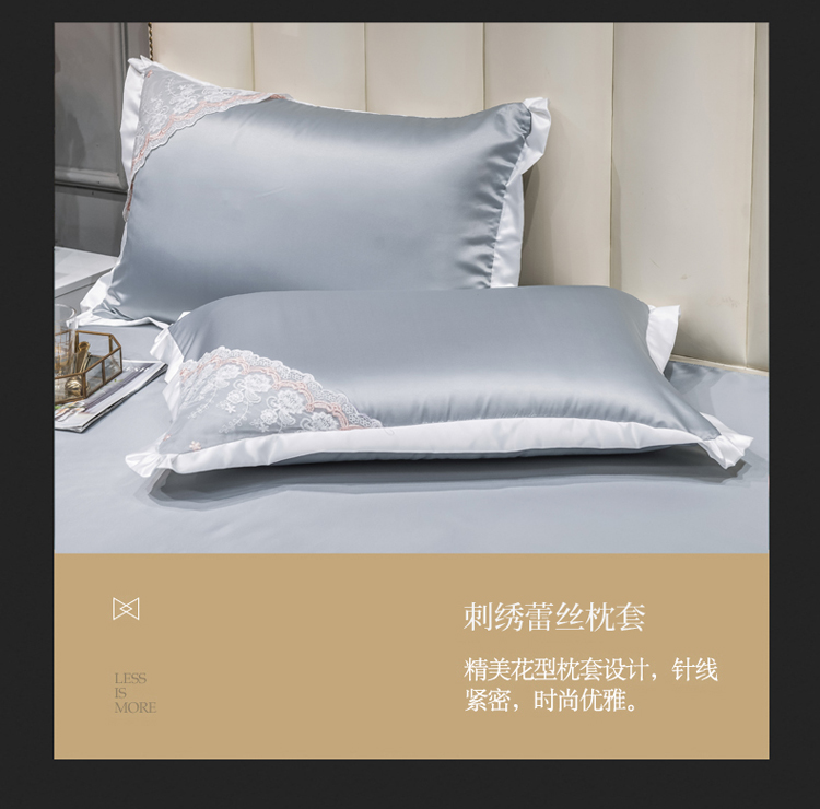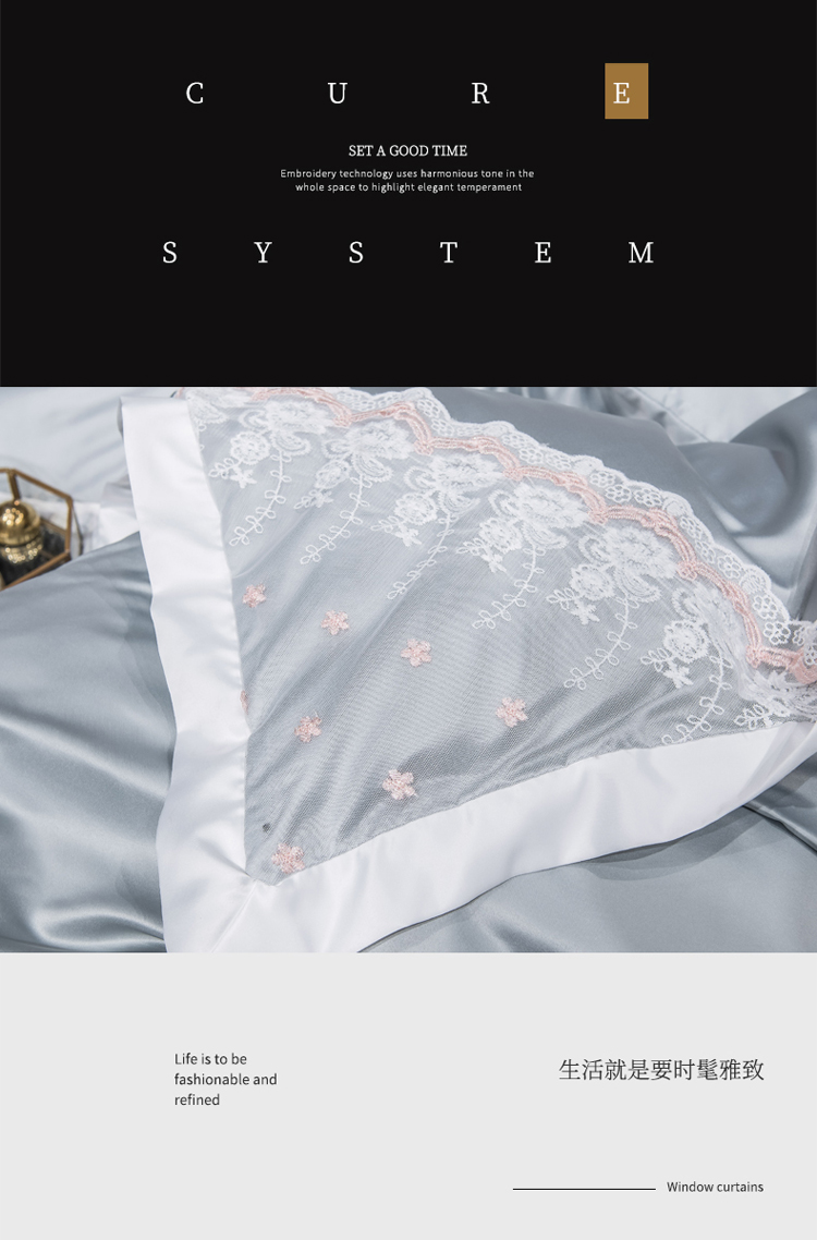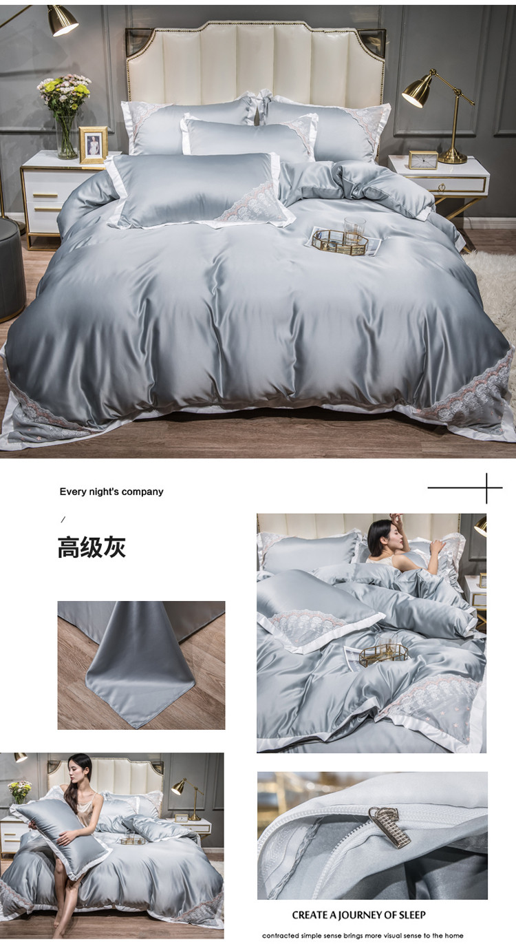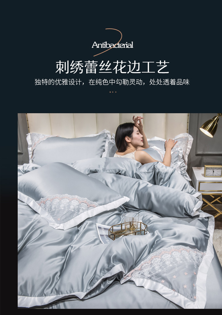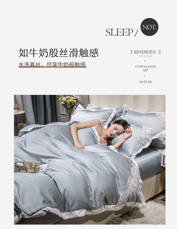 绒世界 2021新款水洗真丝公主四件套 高级灰