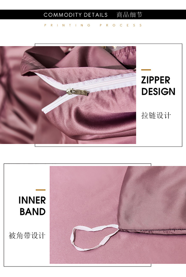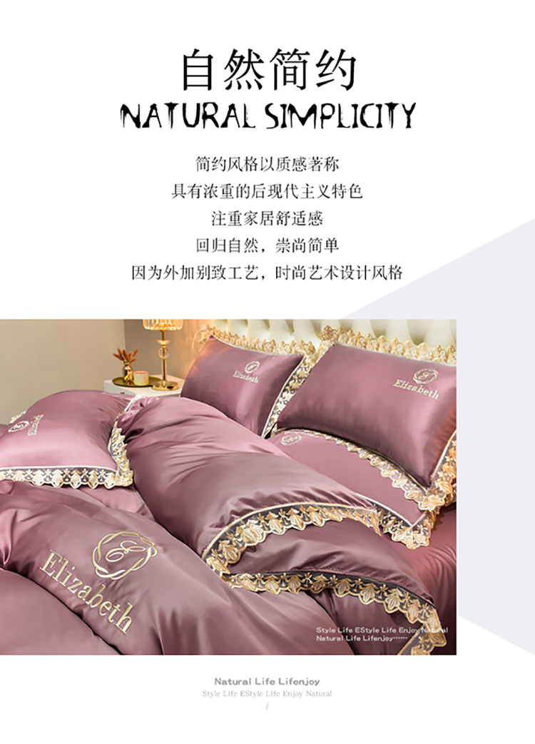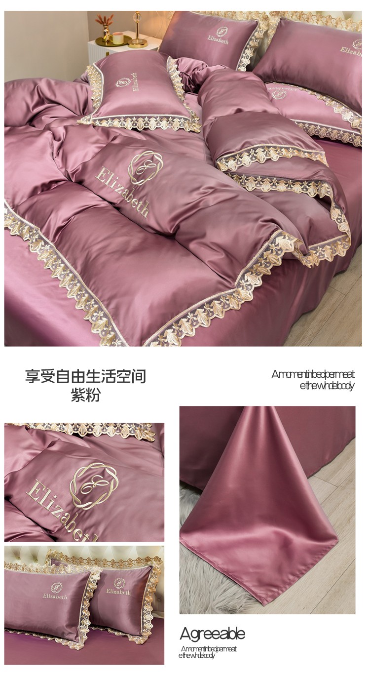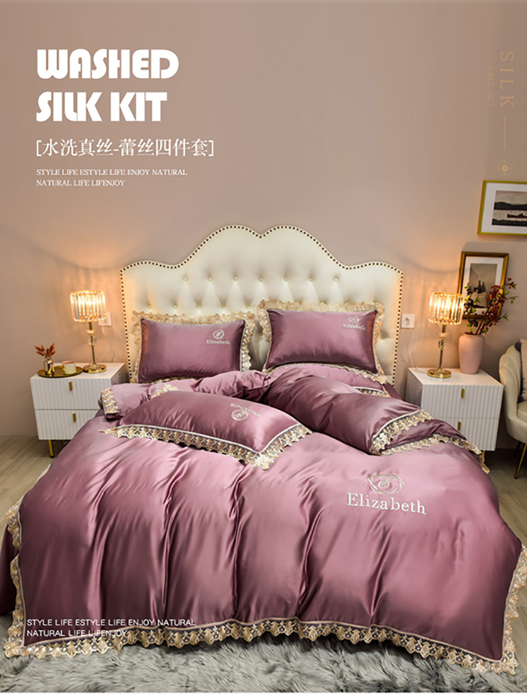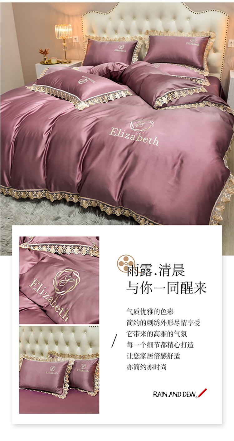 米奈家居 2021新款水洗真丝蕾丝花边爱琳四件套 紫粉