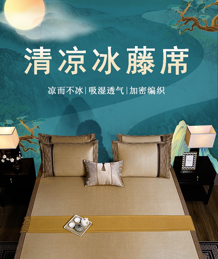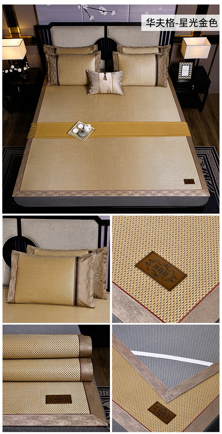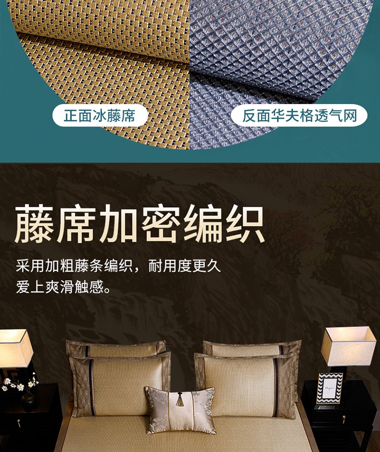 当前位置: 91家纺网 > 商品网购 > 床上用品 > 凉席 > 藤席 > 高档冰藤双面席藤席冰丝席凉席竹席空调席三件套华夫格星光金色